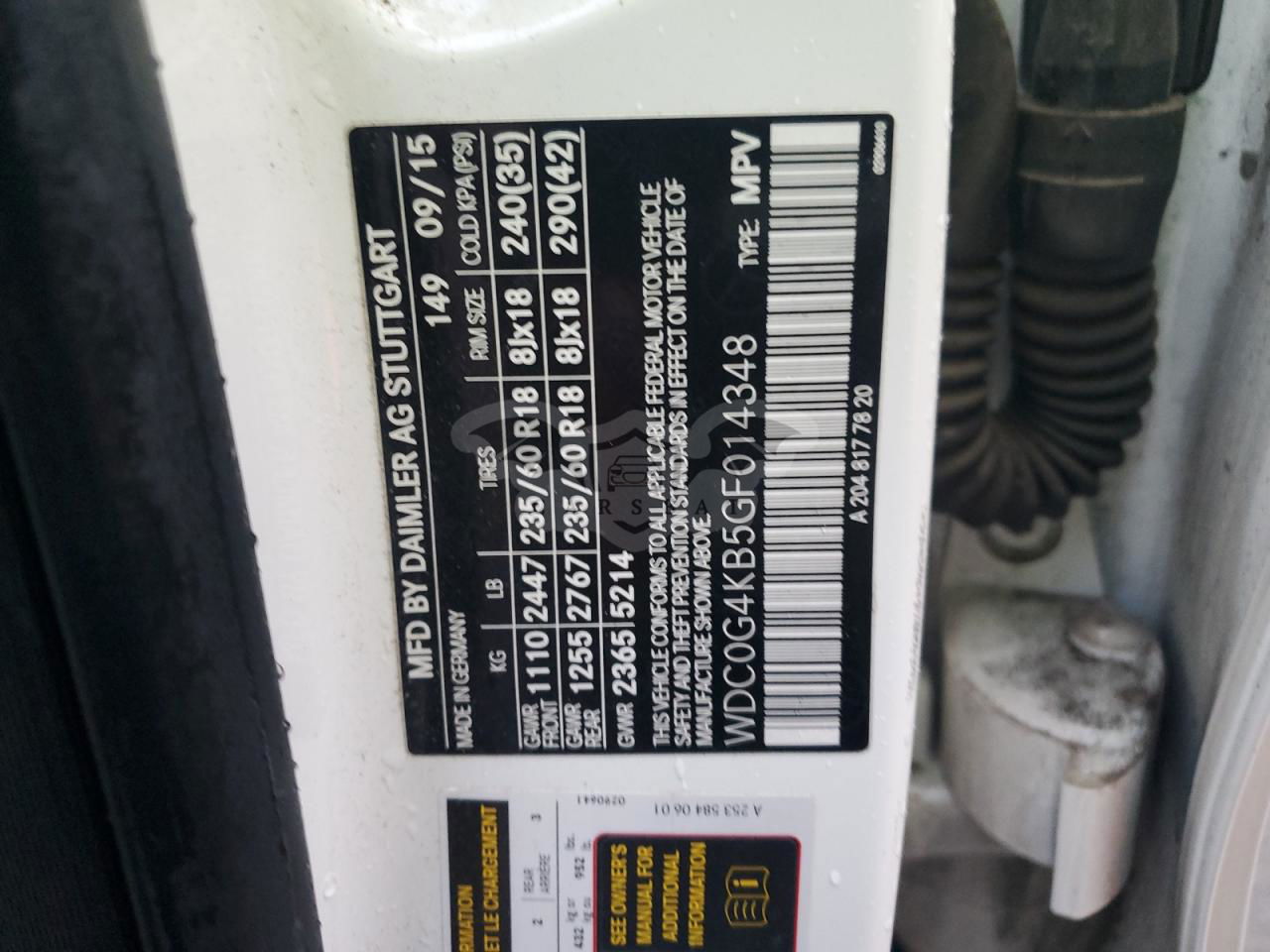 • VIN: WDC0G4KB5GF014348