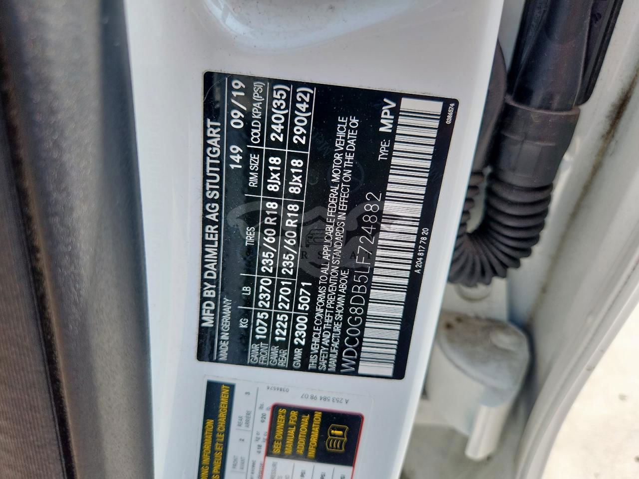 • VIN: WDC0G8DB5LF724882