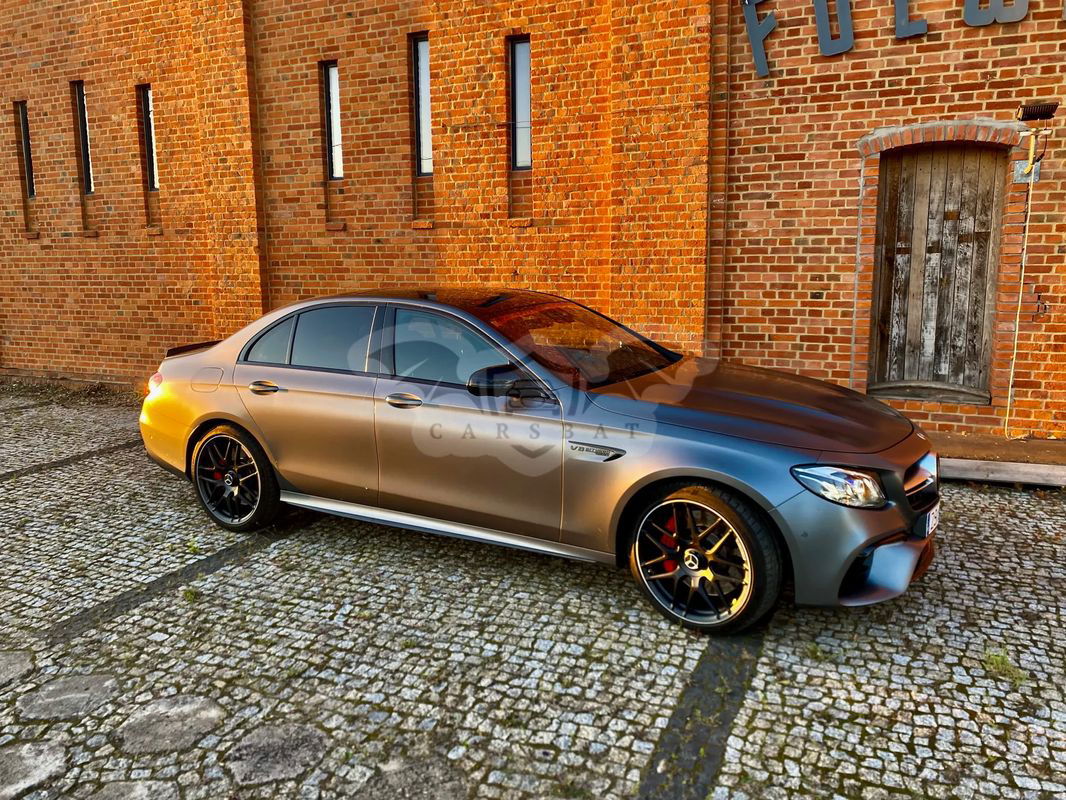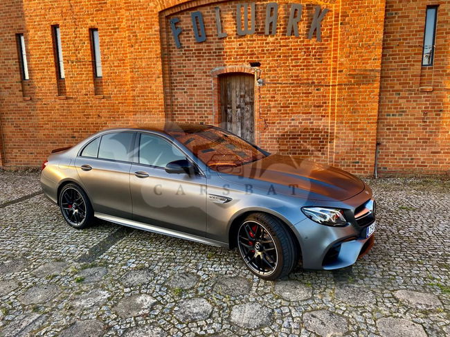 Szary Mercedes-Benz E W213 AMG 63 S 4-Matic+ 2018 roku | Benzyna