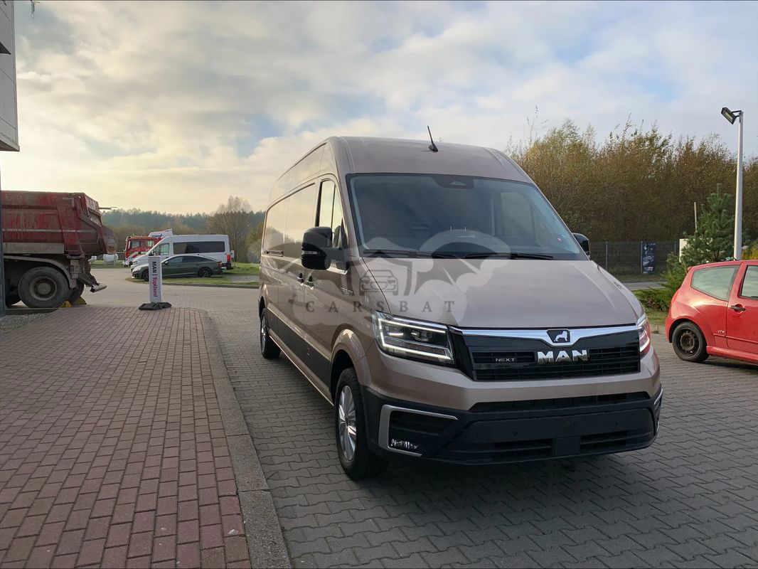 MAN Truck & Bus Polska oferuje nowość na rynku pojazdów dostawczych. OPIS POJAZDU: Rok produkcji: 2024 Norma spalin: Euro6 AR DMC pojazdu: 3500kg Rozstaw osi: 4490 mm Zbiornik paliwa: 75L Opony: 235/65 R16C całoroczne GWARANCJA : -2 LATA BEZ LIMITU KILOMETRÓW + GWARANCJA MOBILNOŚCI -> Gwarancja obowiązuje od daty pierwszej rejestracji pojazdu z opcją przedłużenia. -3 lata na lakier -12 lat na korozję perforacyjną WYPOSAŻENIE STANDARDOWE POJAZDU: - System Start-Stop z odzyskiem energii hamowania - Asystent awaryjnego hamowania - Wspomaganie ruszania pod górę - ESP - Elektroniczny układ stabilizacji toru jazdy WYPOSAŻENIE DODATKOWE AUTA PODANEGO W OFERCIE - Kierownica wielofunkcyjna wykończona skórą, podgrzewana - Materiał opatrunkowy, trójkąt ostrzegawczy, lampka ostrzegawcza, kamizelka odblaskowa - Opony 235/65 R 16 C 115/113 R, z optymalizacją oporu toczenia - Oś przednia, wzmocniona - Pakiet Licht & Sicht - Pierwsze napełnienie paliwem o objętości 15 l - Siedzenie amortyzowane „ergoComfort” z lewej strony - System kamery cofania z dynamicznymi liniami prowadzącymi - Wskaźnik poziomu płynu do spryskiwaczy, bez systemu czyszczenia reflektorów, bez ogrzewanych dysz spryskiwaczy L4H3 – długi / dach wysoki Kod MAN auta: M6RHGCFG Kod AE auta: