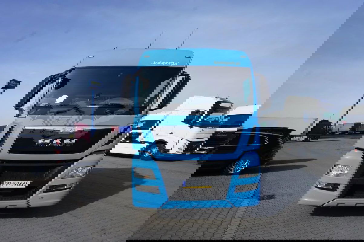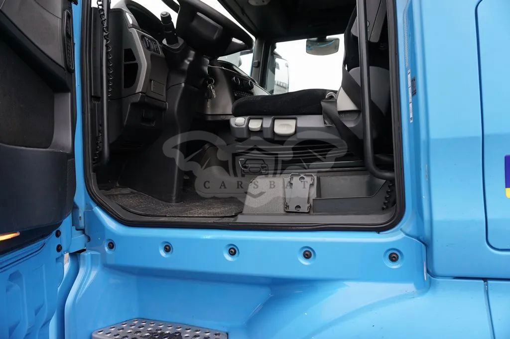 Hamulec górski, ABS, ESP, LGS - Asystent Pasa Ruchu, ACC - Tempomat Adaptacyjny, System Efficient Cruise, ASR, System Efficient Roll, Tempomat, Blokada mostu, Ogrzewanie stacjonarne, Klimatyzacja, Kierownica multifunkcyjna, Fotel pneumatyczny, Elektrycznie sterowane szyby, Elektrycznie sterowane lusterka, Szyberdach, Lodówka, CB radio, Radio, Immobiliser, Spojler dachowy, Spojlery boczne