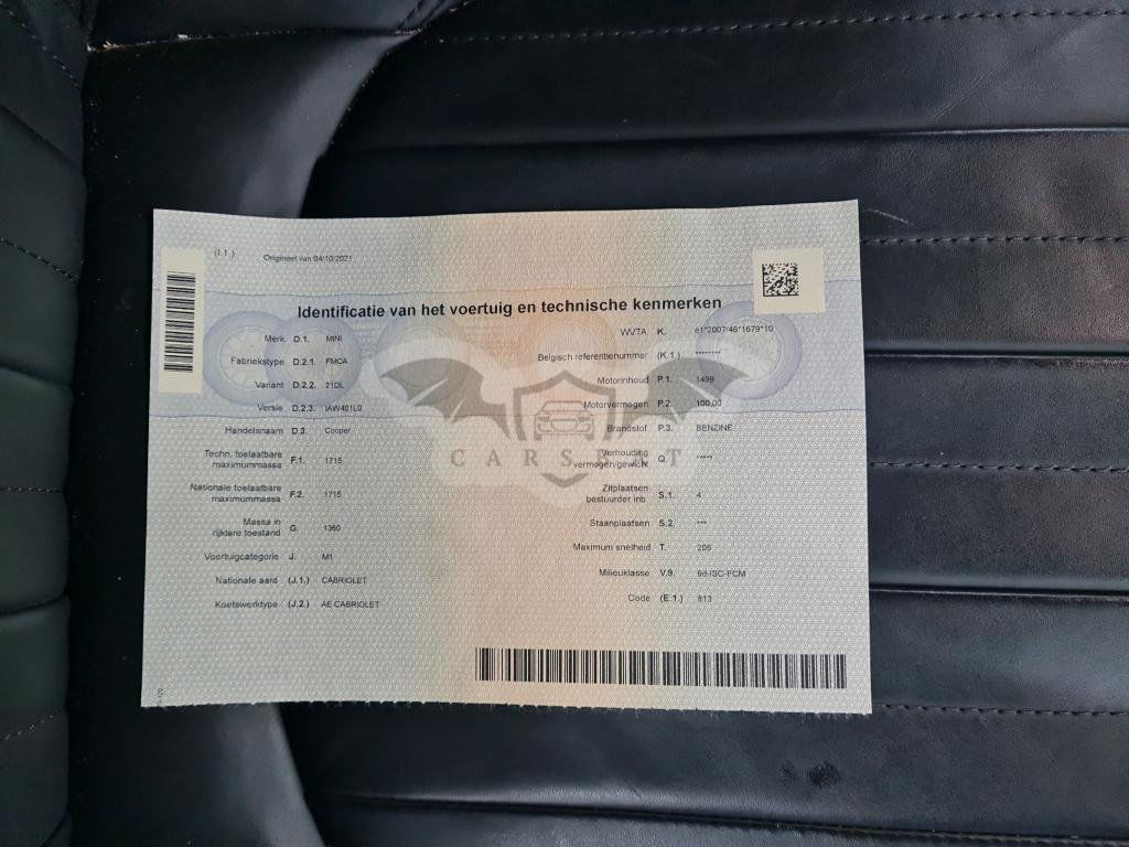 Srebrny Mini Cabrio Cooper 1.5 2021 roku | Benzyna