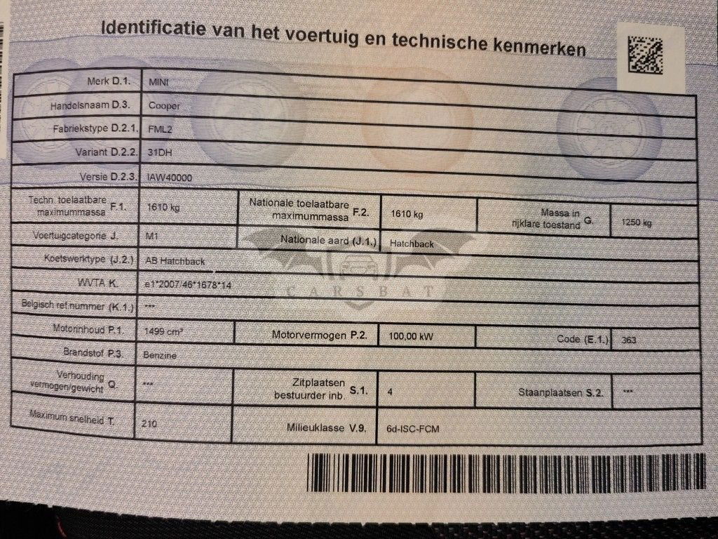 • VIN: WMW31DH0202T54318
