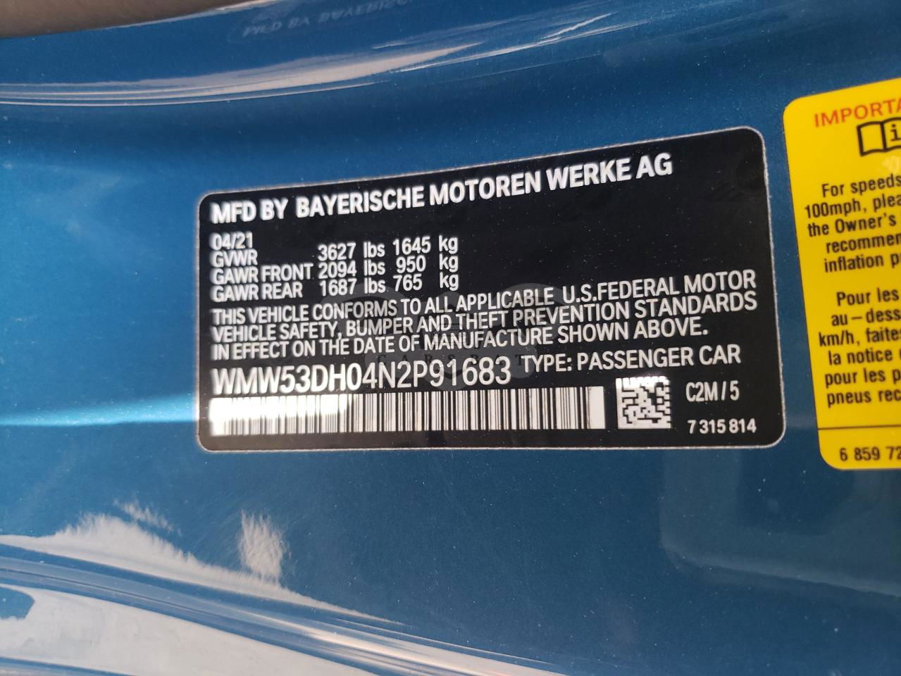 • VIN: WMW53DH04N2P91683