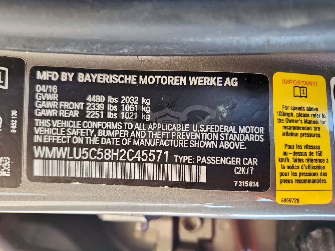 • VIN: WMWLU5C58H2C45571