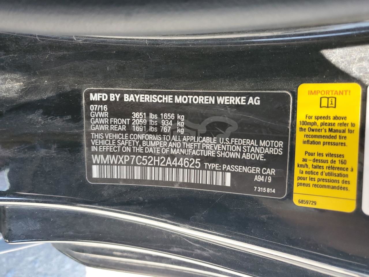 • VIN: WMWXP7C52H2A44625