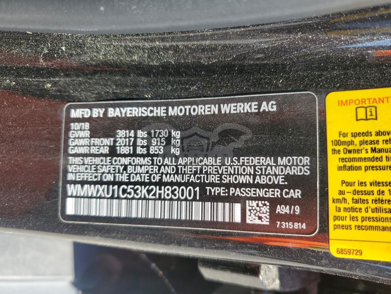 • VIN: WMWXU1C53K2H83001