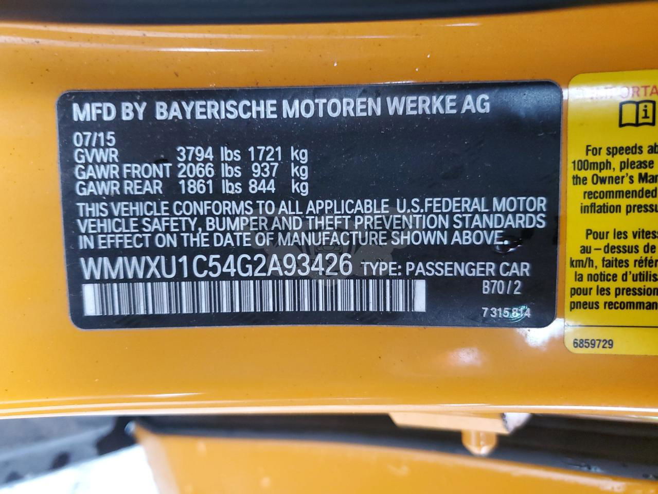 • VIN: WMWXU1C54G2A93426