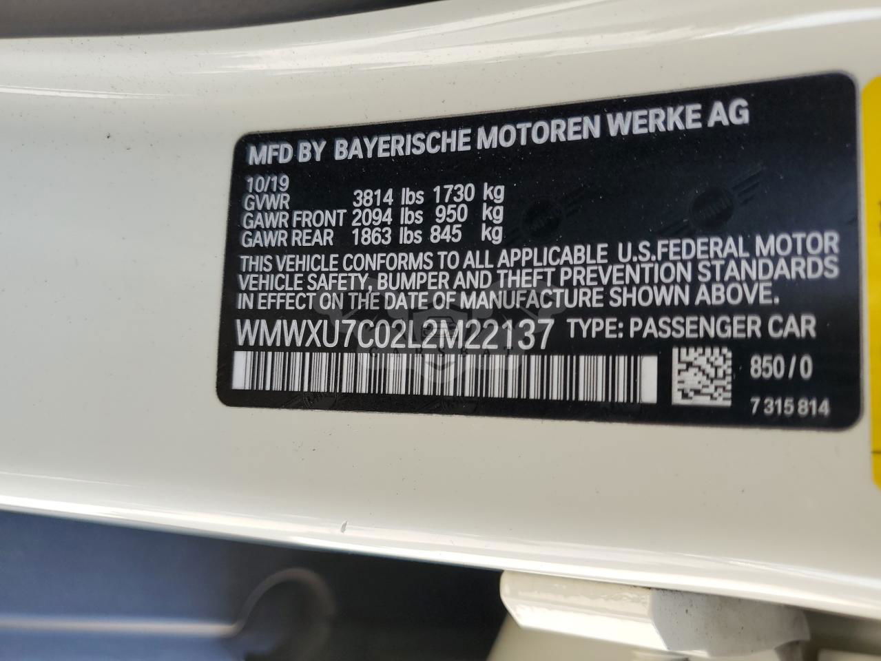 • VIN: WMWXU7C02L2M22137