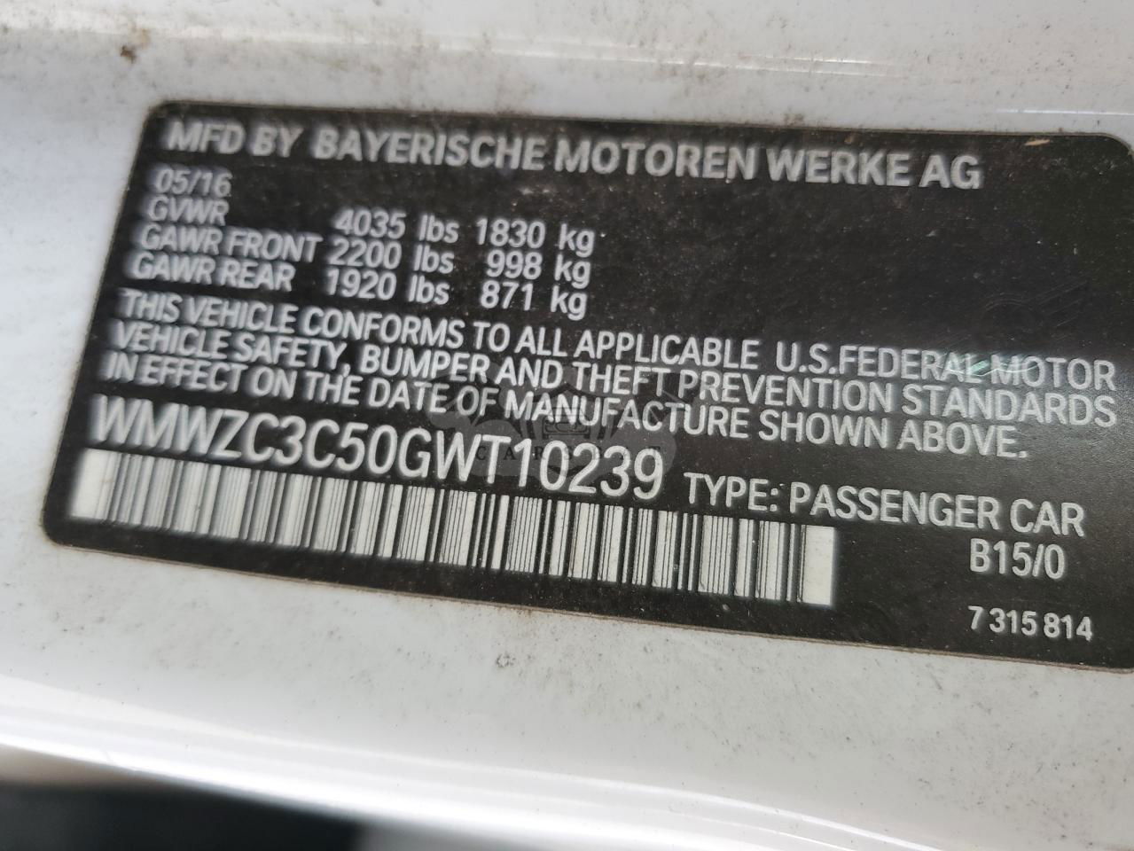 • VIN: WMWZC3C50GWT10239