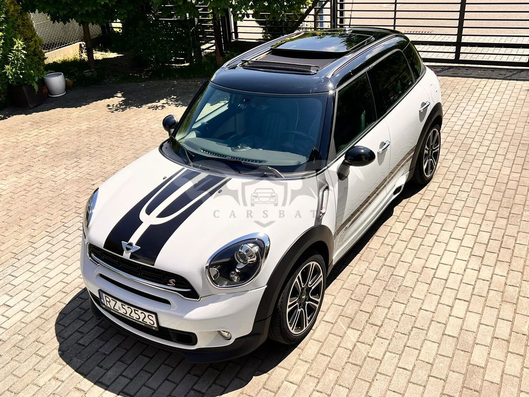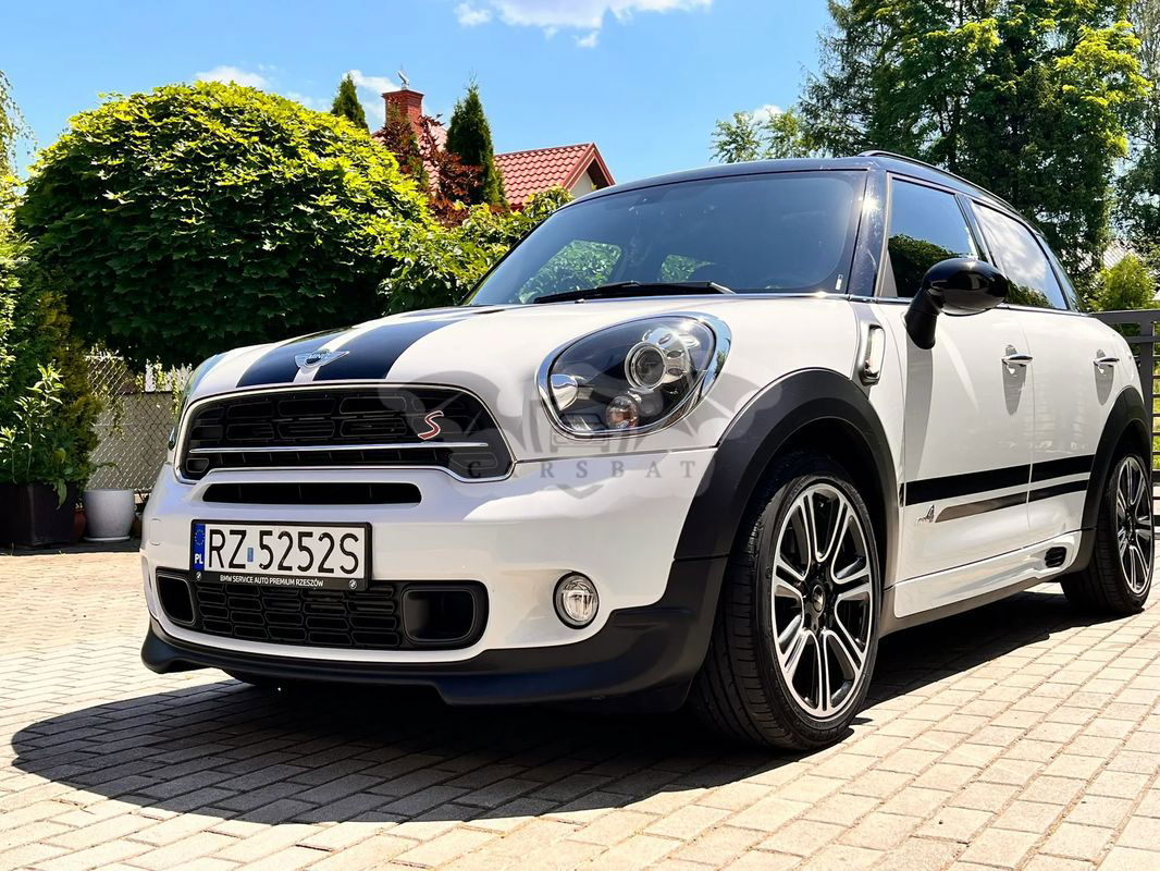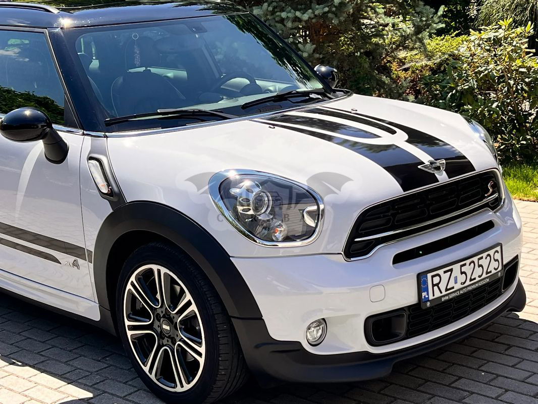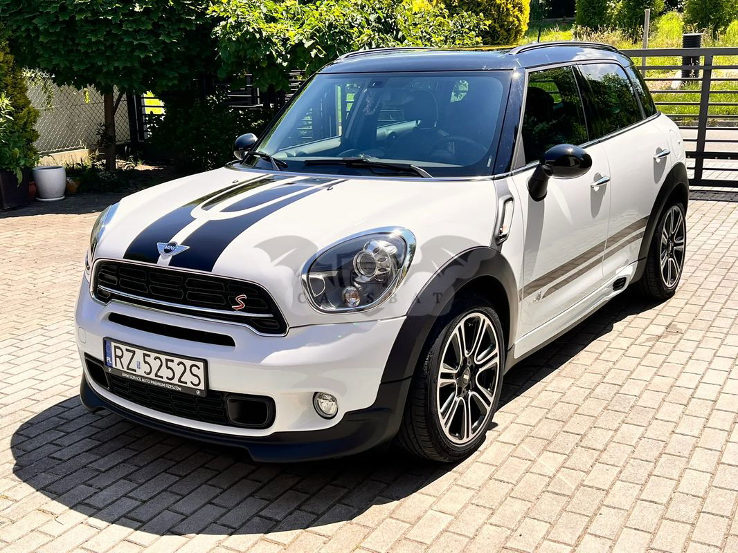 Do sprzedania Mini Cooper S All 4 Countryman w ciekawej wersji John Cooper Works. Pierwszy właściciel, serwisowany w ASO, garażowany. Wnętrzne ciemne (skórzana, dobrze utrzymana tapicerka) z jasnymi elementami. Ma czujniki parkowania z tyłu, powłokę ceramiczną, odzysk energii hamowania, relingi dachowe i tylny spoiler, podgrzewanie lusterek zewnętrznych, diodowe światła przeciwmgielne.