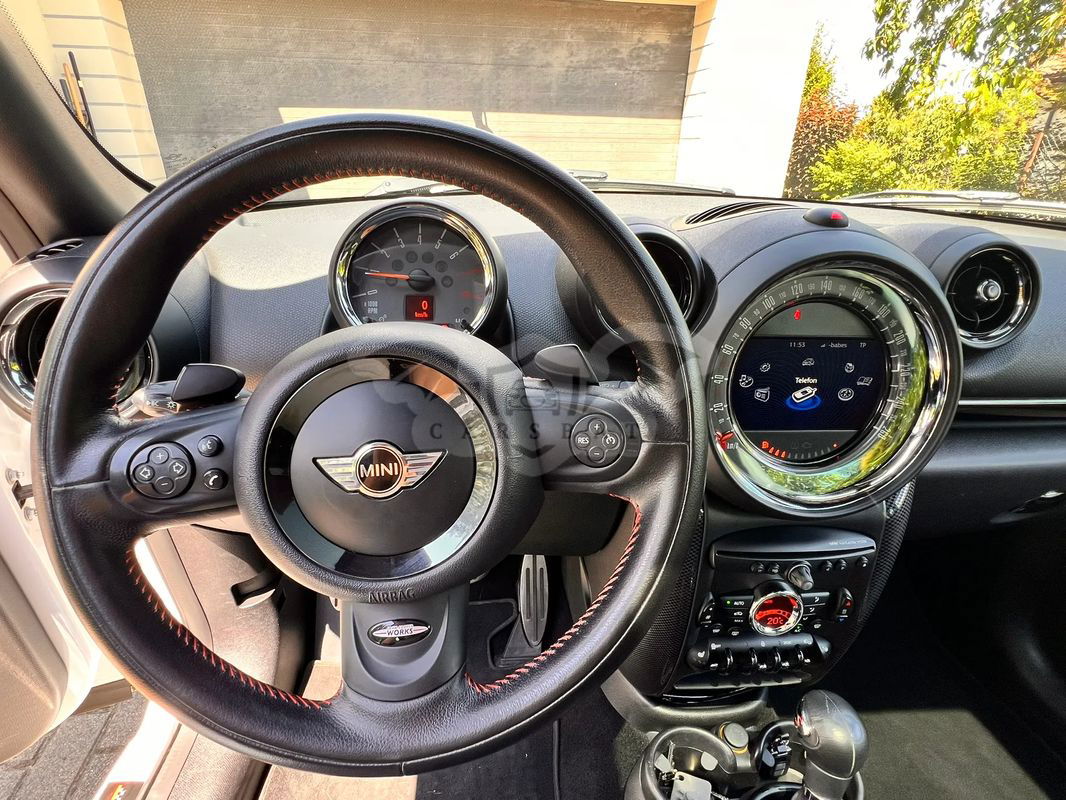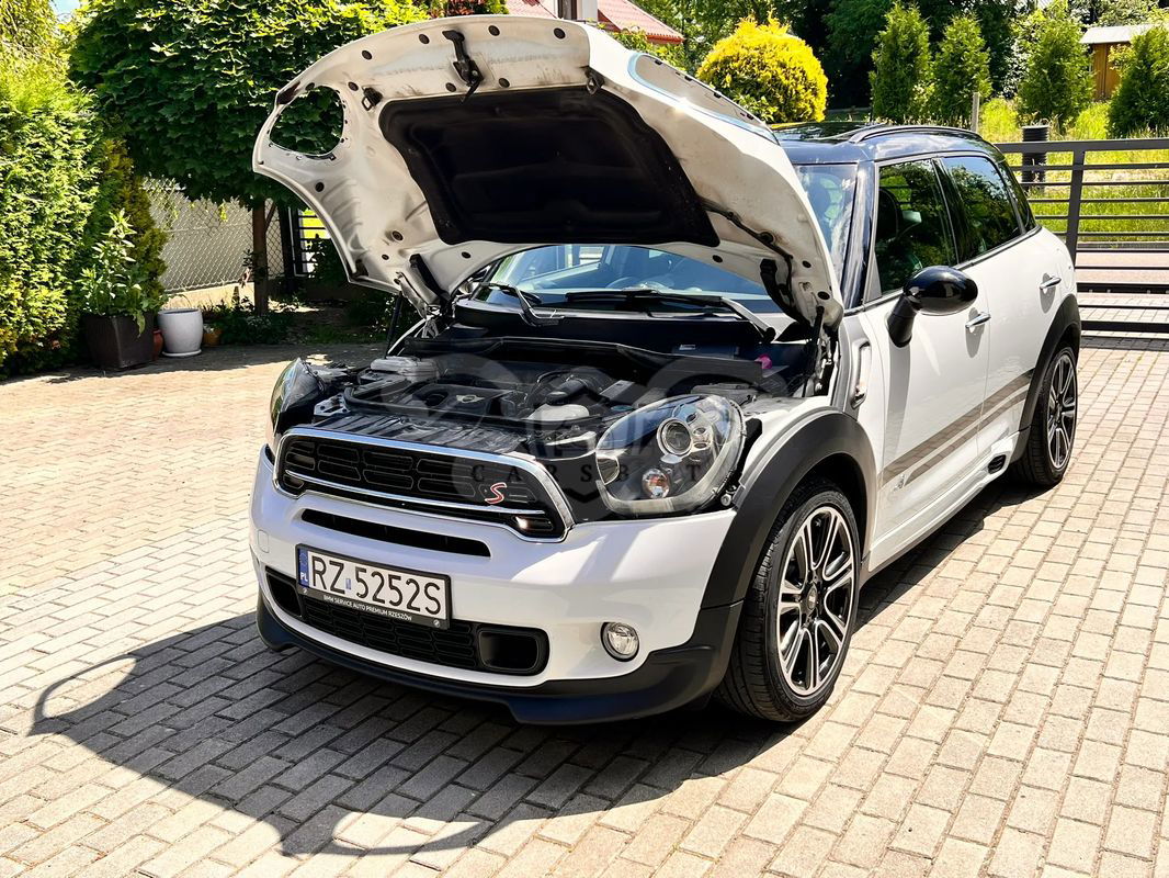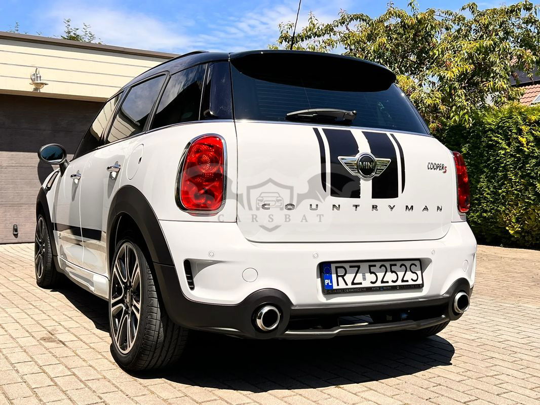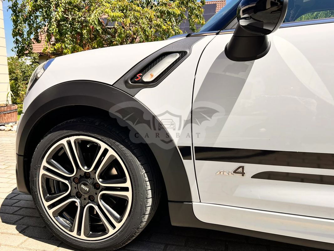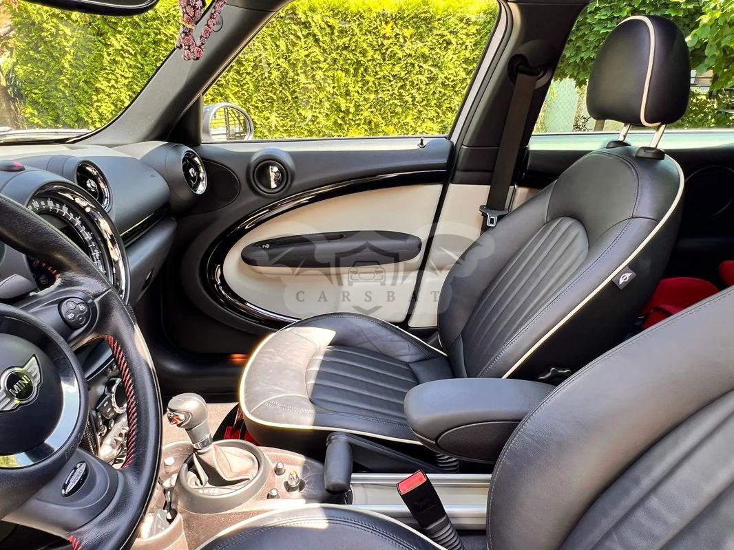 Do sprzedania Mini Cooper S All 4 Countryman w ciekawej wersji John Cooper Works. Pierwszy właściciel, serwisowany w ASO, garażowany. Wnętrzne ciemne (skórzana, dobrze utrzymana tapicerka) z jasnymi elementami. Ma czujniki parkowania z tyłu, powłokę ceramiczną, odzysk energii hamowania, relingi dachowe i tylny spoiler, podgrzewanie lusterek zewnętrznych, diodowe światła przeciwmgielne.