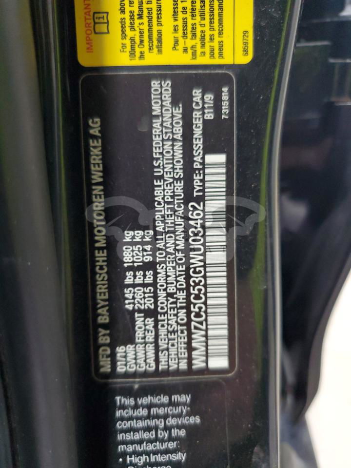• VIN: WMWZC5C53GWU03462