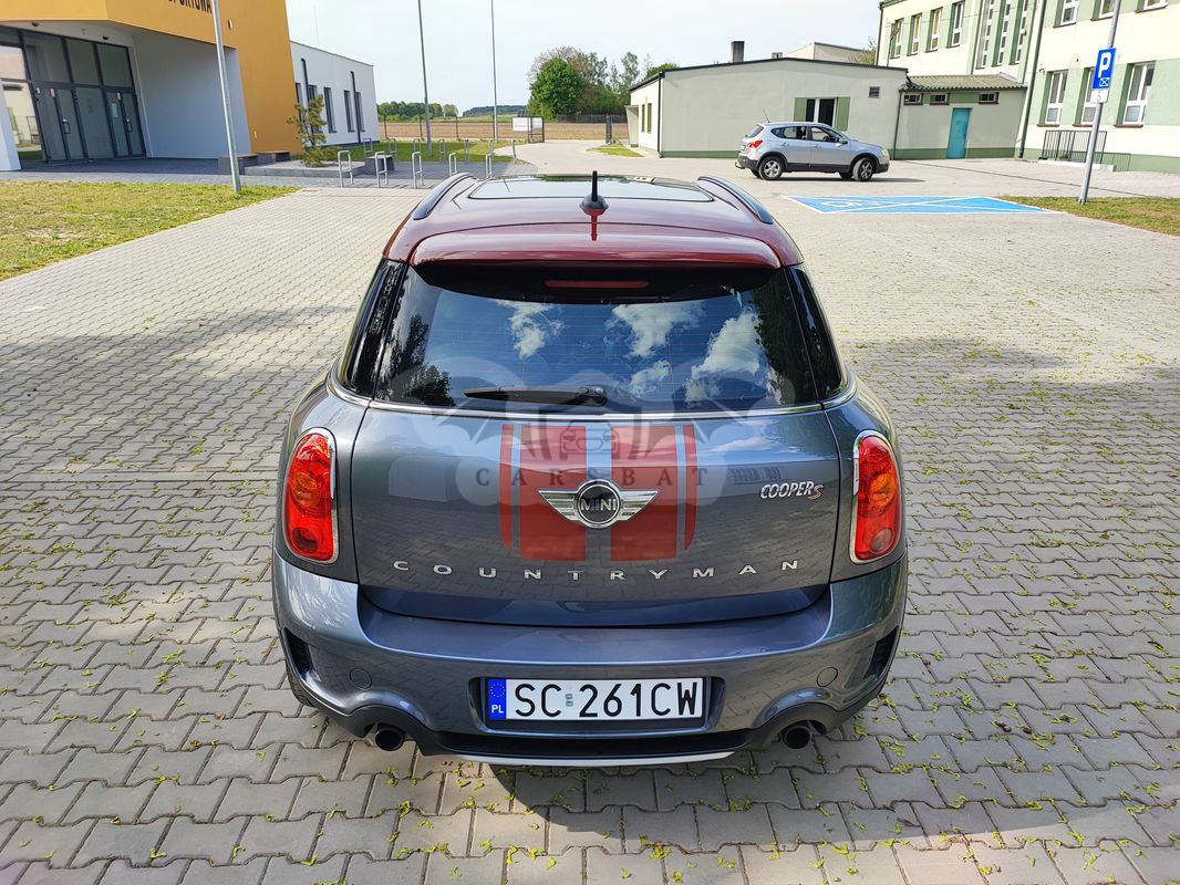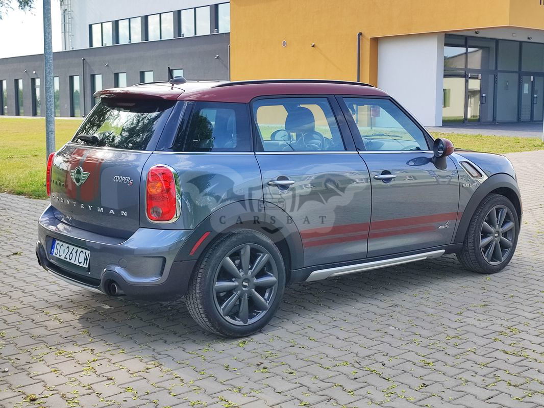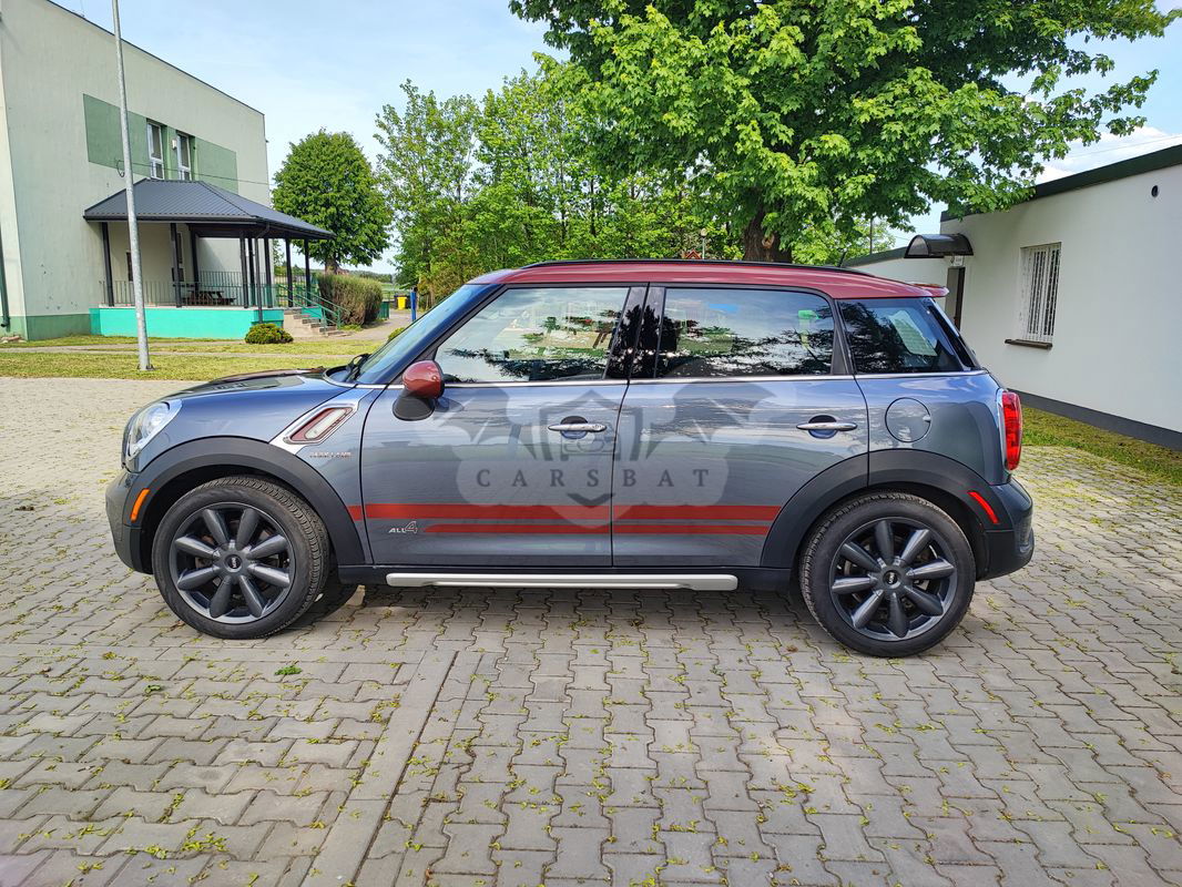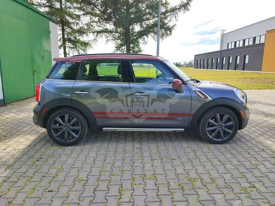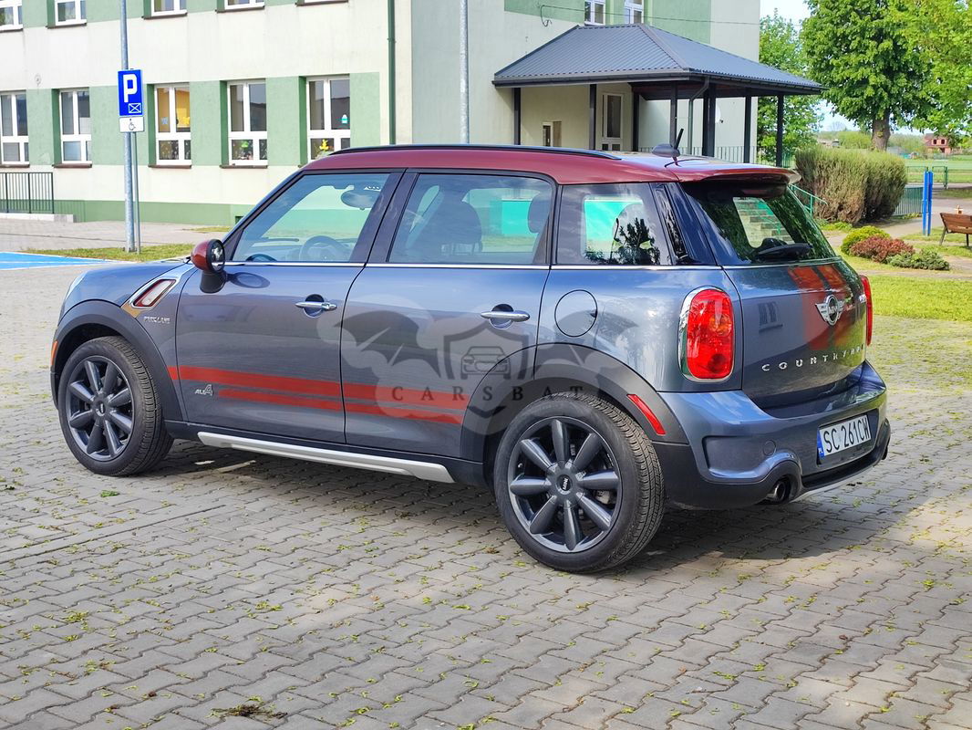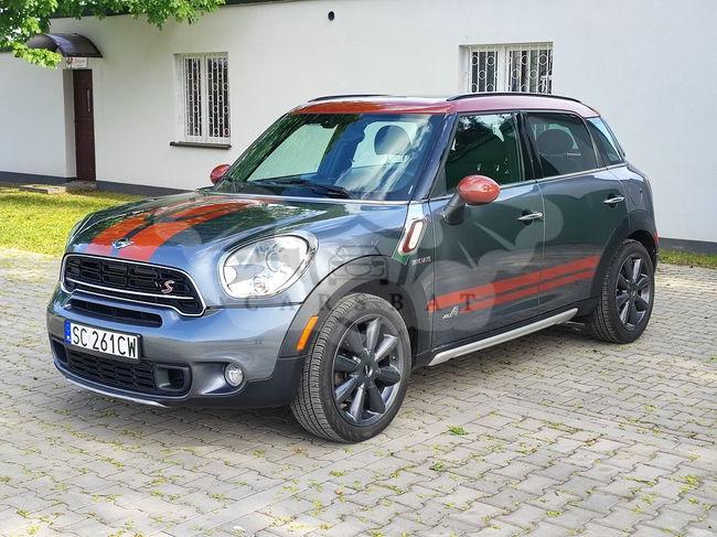 Sprzedam Mini Countyman Cooper S Park Lane z napędem 4x4 2016r. o pojemności 1,6 184koni oraz manualna skrzynia biegów i 142tyś. km przebiegu. Samochód pochodzi ze Stanów Zjednoczonych, sprowadzony i naprawiony w zeszłym roku. Lakierowane były tylko zderzaki, został wypolerowany i prezentuje się znakomicie. Środek nie ma praktycznie żadnych śladów użytkowania. Opony w bardzo dobrym stanie, praktycznie nowe tak samo jak tarcze i klocki. Wszystko w samochodzie działa bez zarzutów. Do samochodu dodaje oryginalne relingi dachowe. Cena podlega negocjacji. Proszę o kontakt telefoniczny.