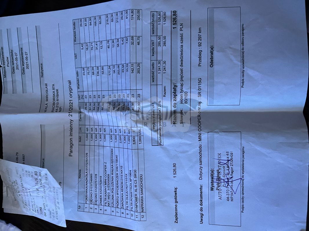 Witam na sprzedaż Mini S z niskim przebiegiem , samochód uszanowany kierownicą fotel w bardzo dobrej kondycji potwierdzające przebieg autka. Silnik ma moc nie kopci nie pobiera oleju jest zdrowy. Zawieszenie bez luzów czy stuków całe sprawne. Cena auta obniżona ze względu na wyciek na turbinie , wypadało by już ją wymienić ( oczywiście działa i auto nie straciło mocy ale wymaga wymiany)