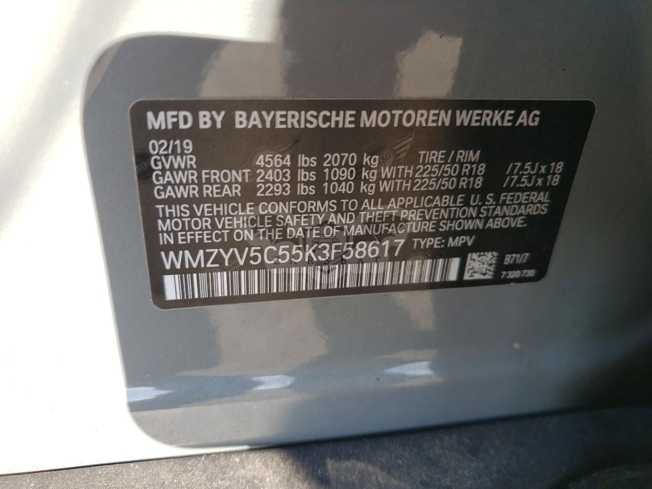 • VIN: WMZYV5C55K3F58617