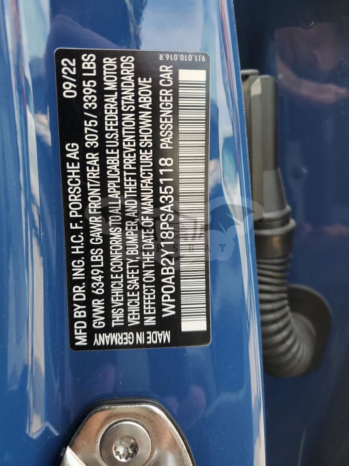 • VIN: WP0AB2Y18PSA35118