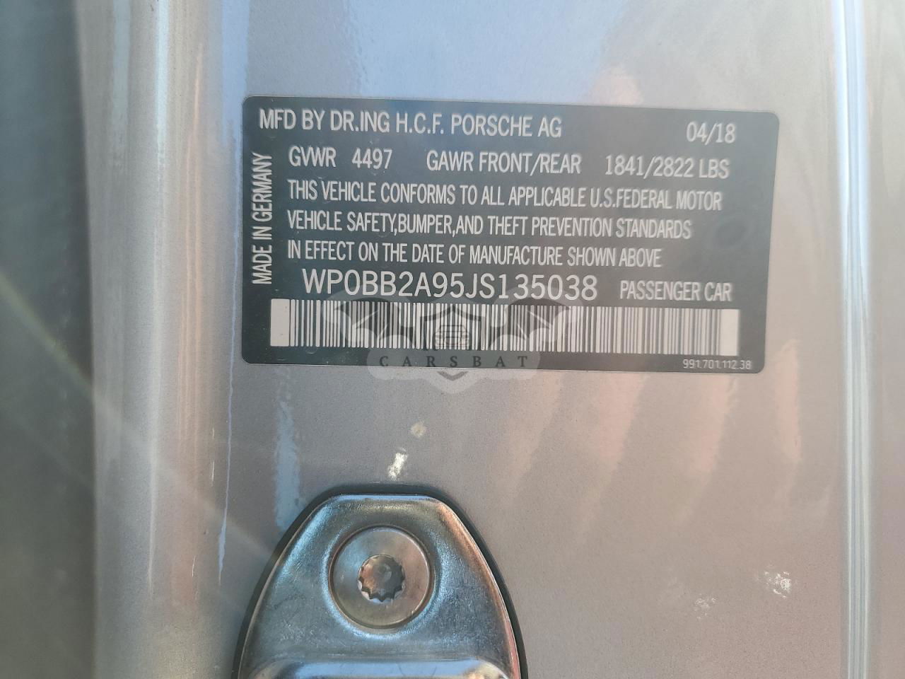 • VIN: WP0BB2A95JS135038