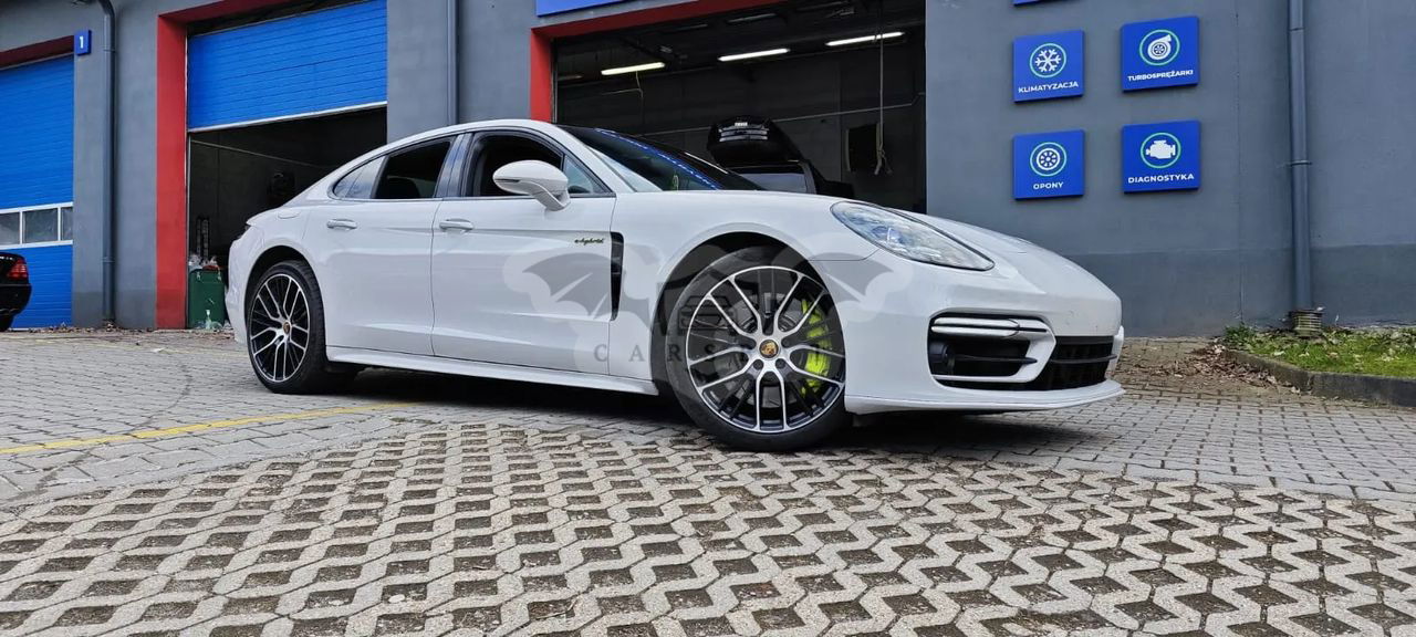Porsche Panamera 4S E-Hybrid to wyjątkowy samochód, który łączy w sobie luksus, sportowe osiągi i nowoczesne technologie hybrydowe. Dzięki folii 3M w kolorze brudnej bieli, samochód zyskuje unikalny wygląd, który przyciąga wzrok.