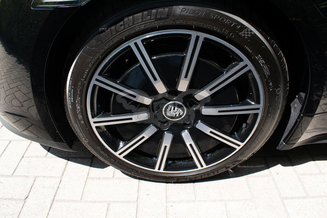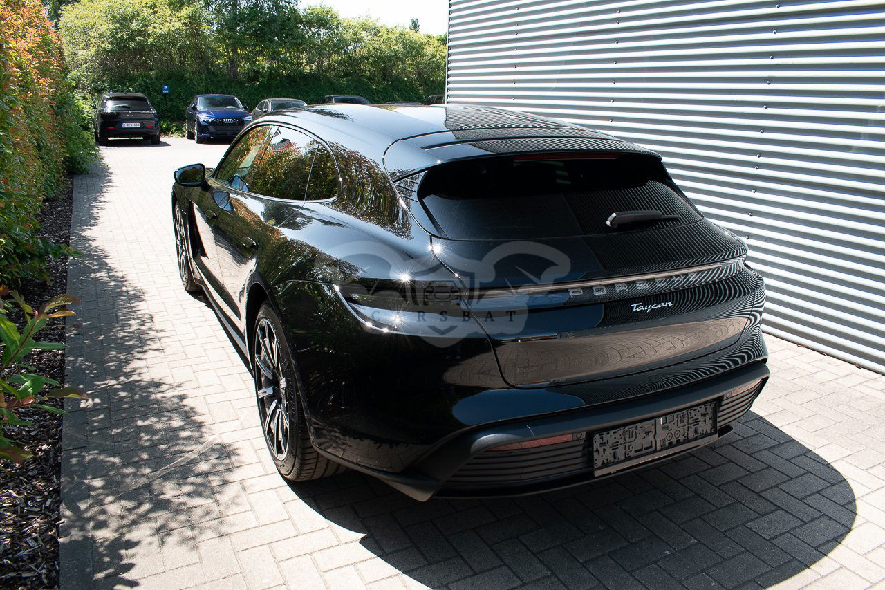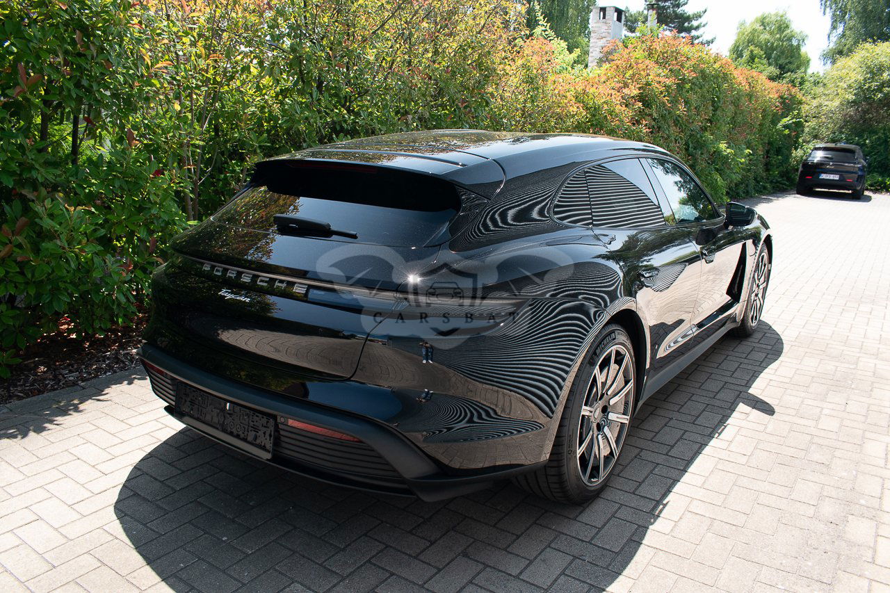 Czarny Porsche Taycan 2023 roku | Elektryczny