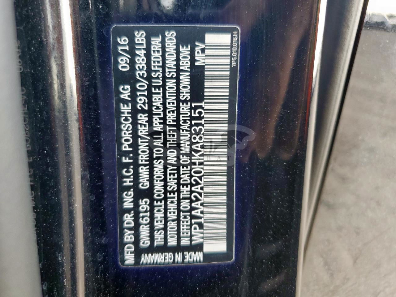 • VIN: WP1AA2A20HKA83151