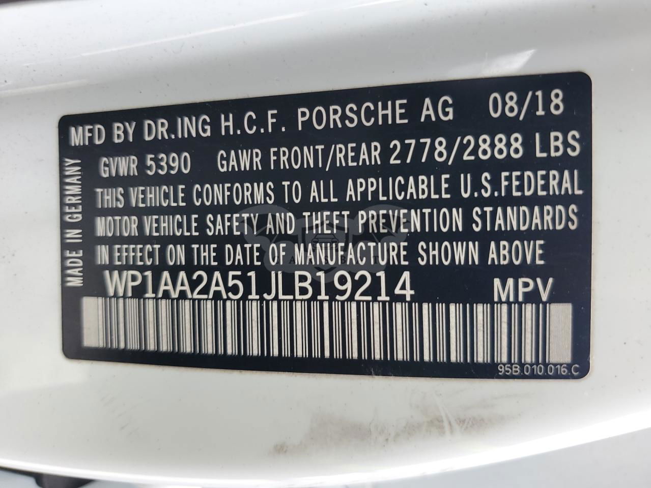 • VIN: WP1AA2A51JLB19214