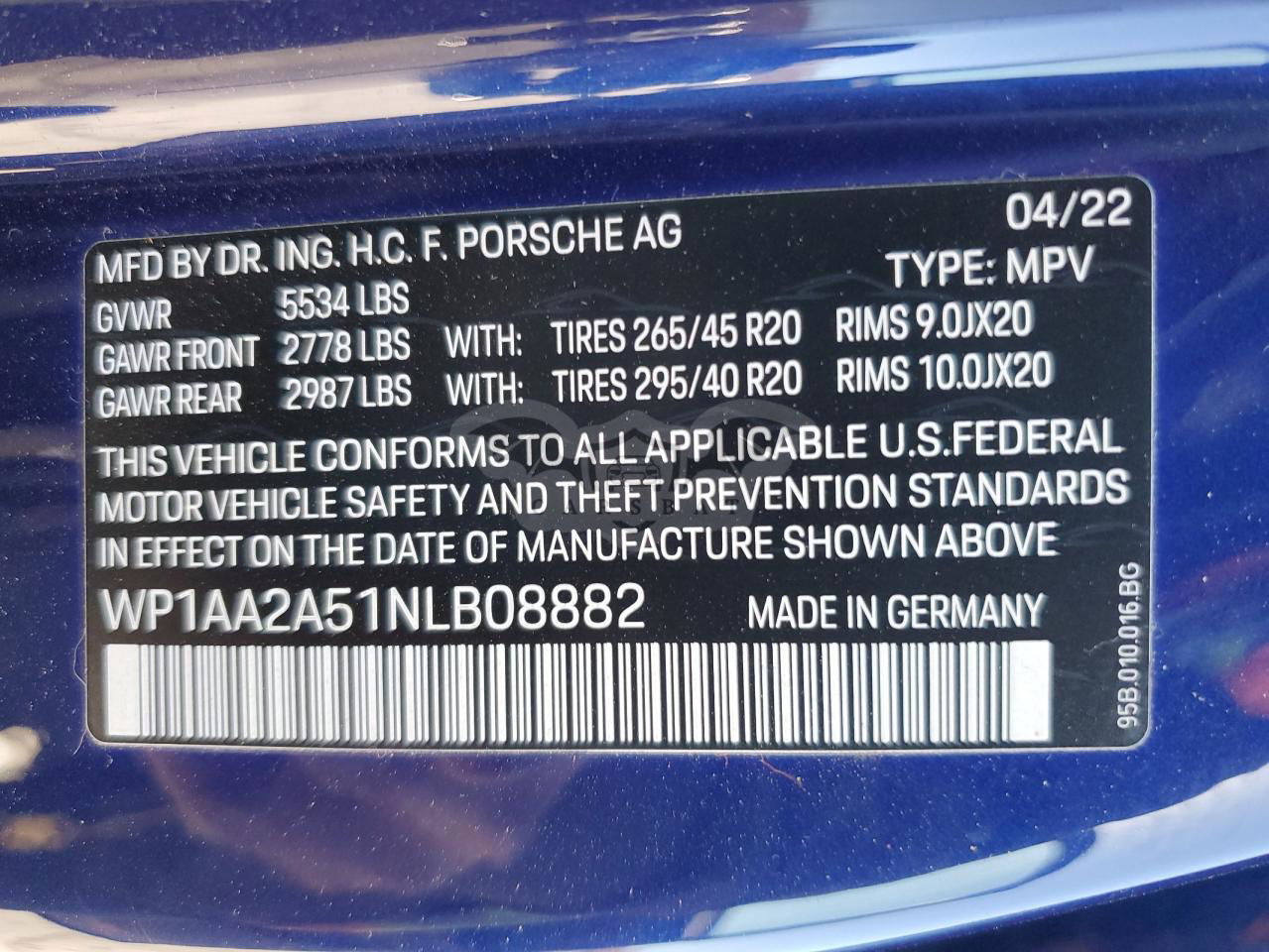 • VIN: WP1AA2A51NLB08882