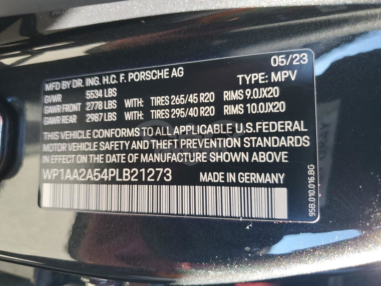 • VIN: WP1AA2A54PLB21273