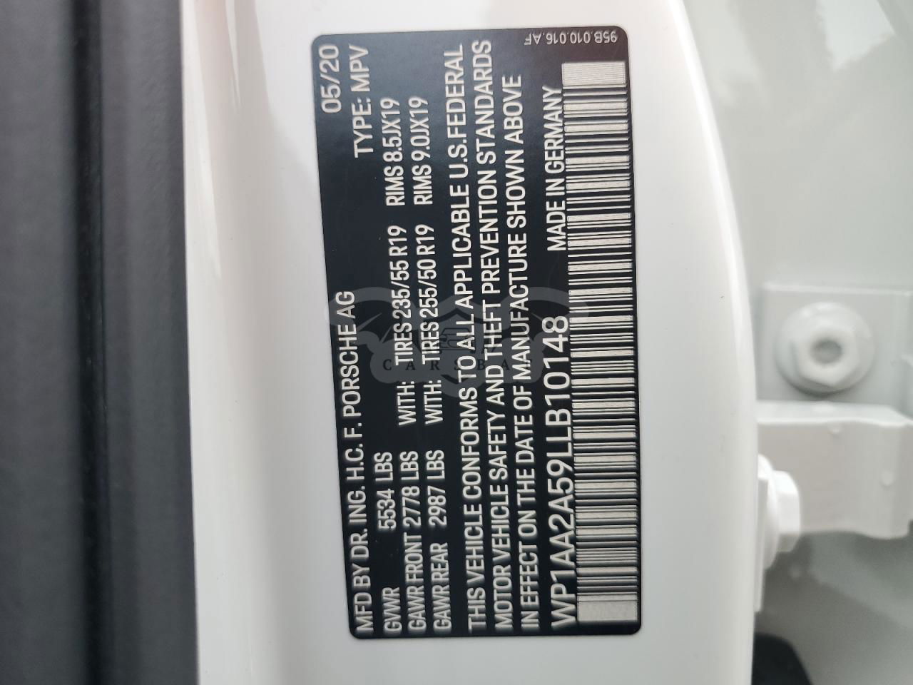 • VIN: WP1AA2A59LLB10148