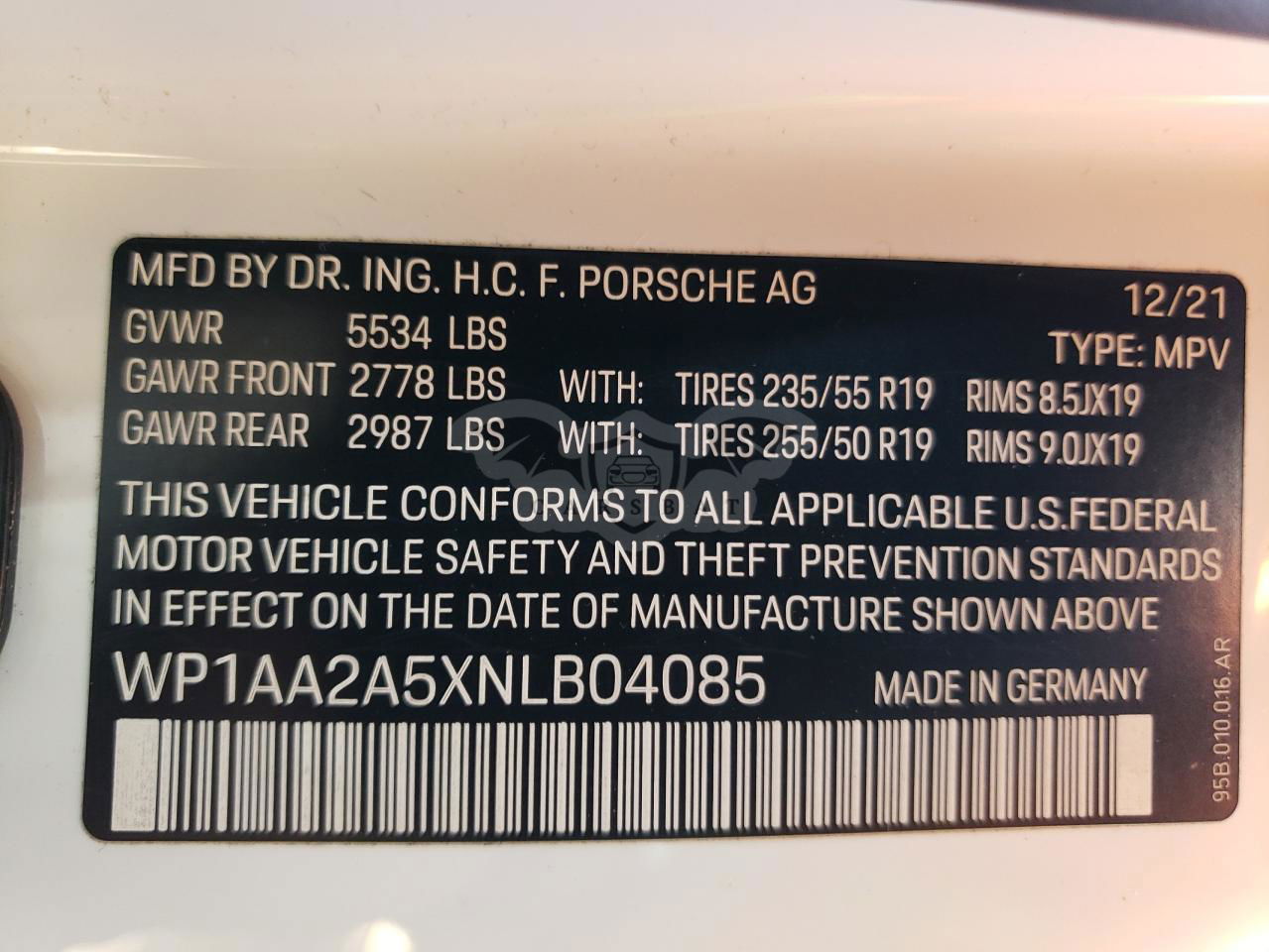 • VIN: WP1AA2A5XNLB04085