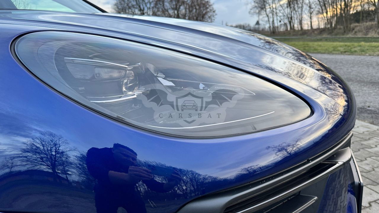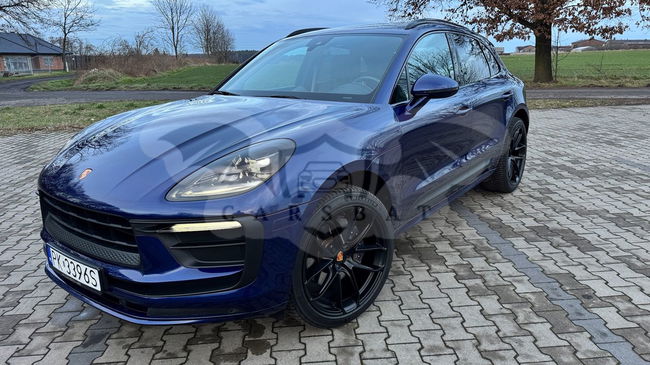 Ciemnoniebieski Porsche Macan II 2022 roku | Benzyna