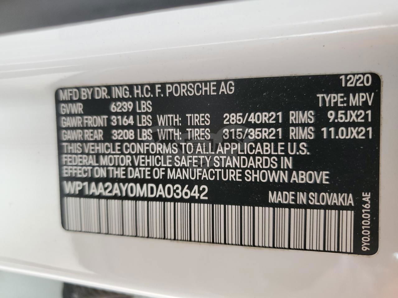 • VIN: WP1AA2AY0MDA03642