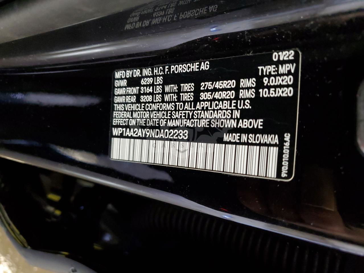 • VIN: WP1AA2AY9NDA02233
