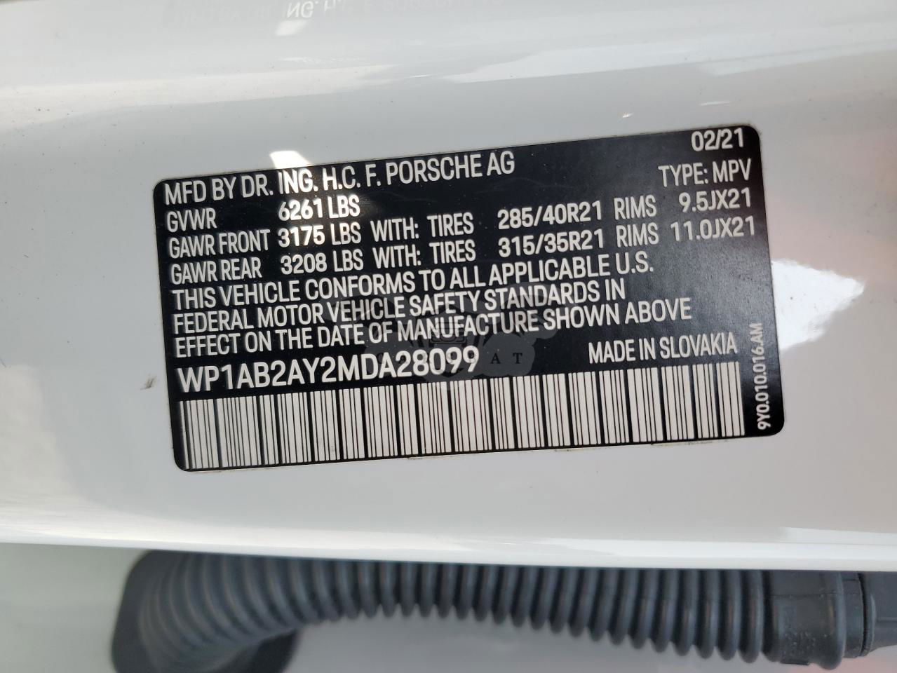 • VIN: WP1AB2AY2MDA28099