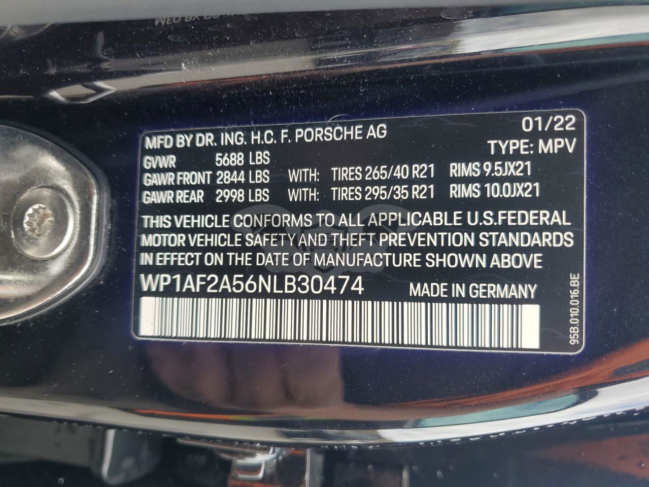 • VIN: WP1AF2A56NLB30474