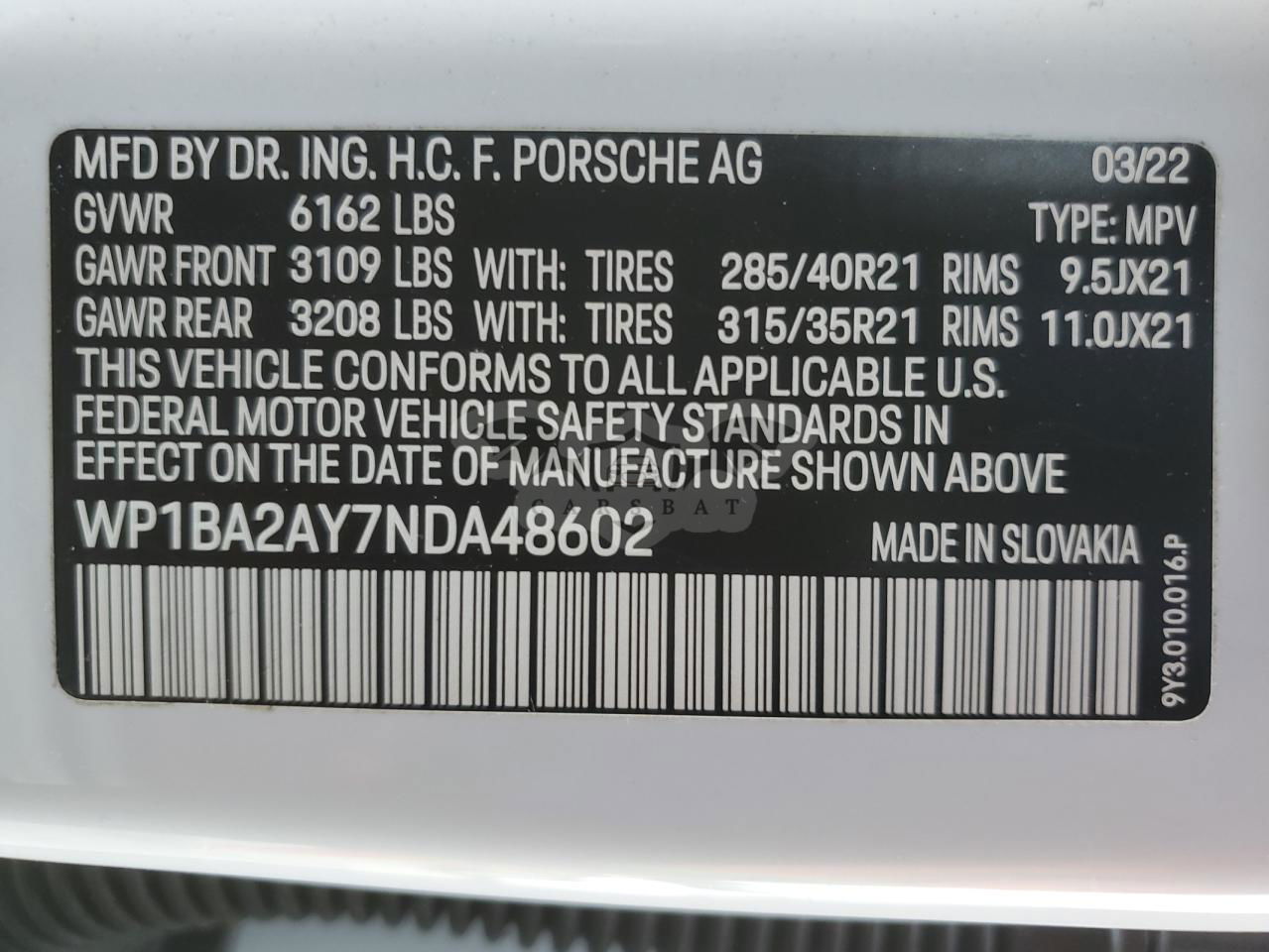 • VIN: WP1BA2AY7NDA48602