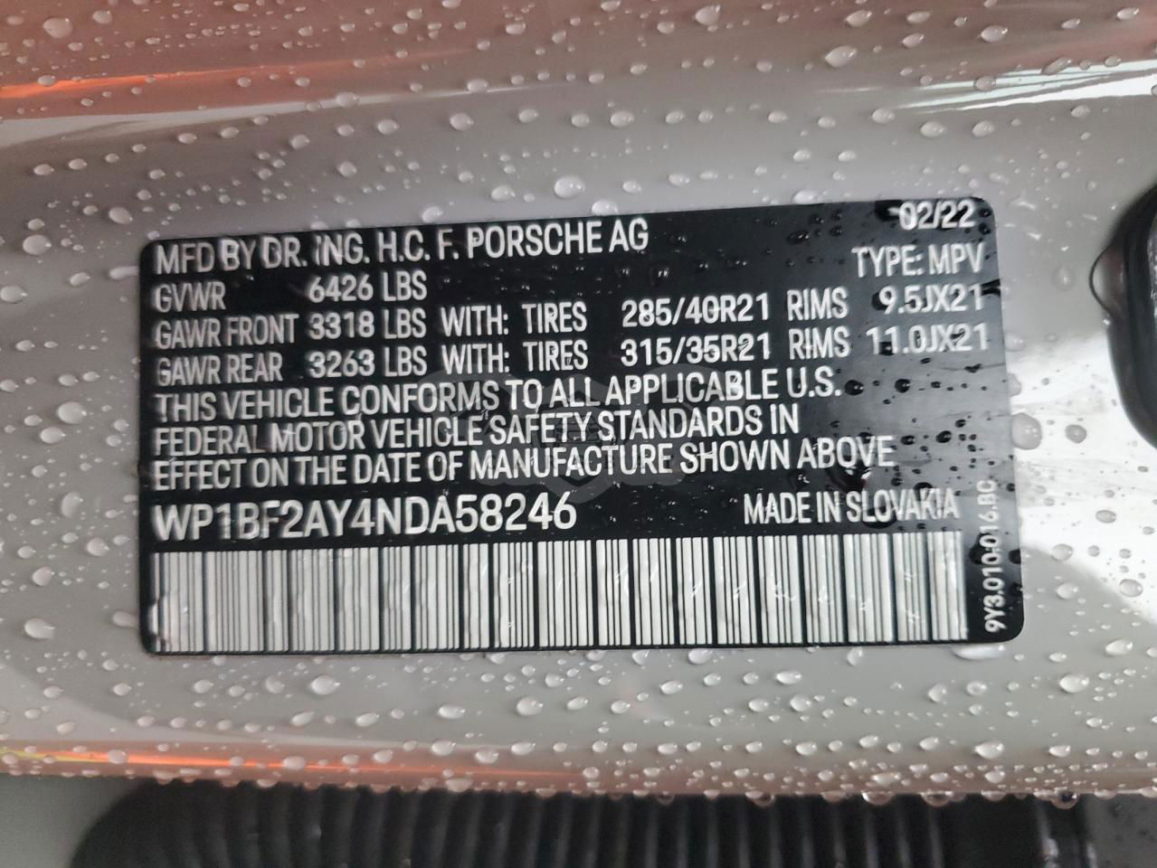 • VIN: WP1BF2AY4NDA58246