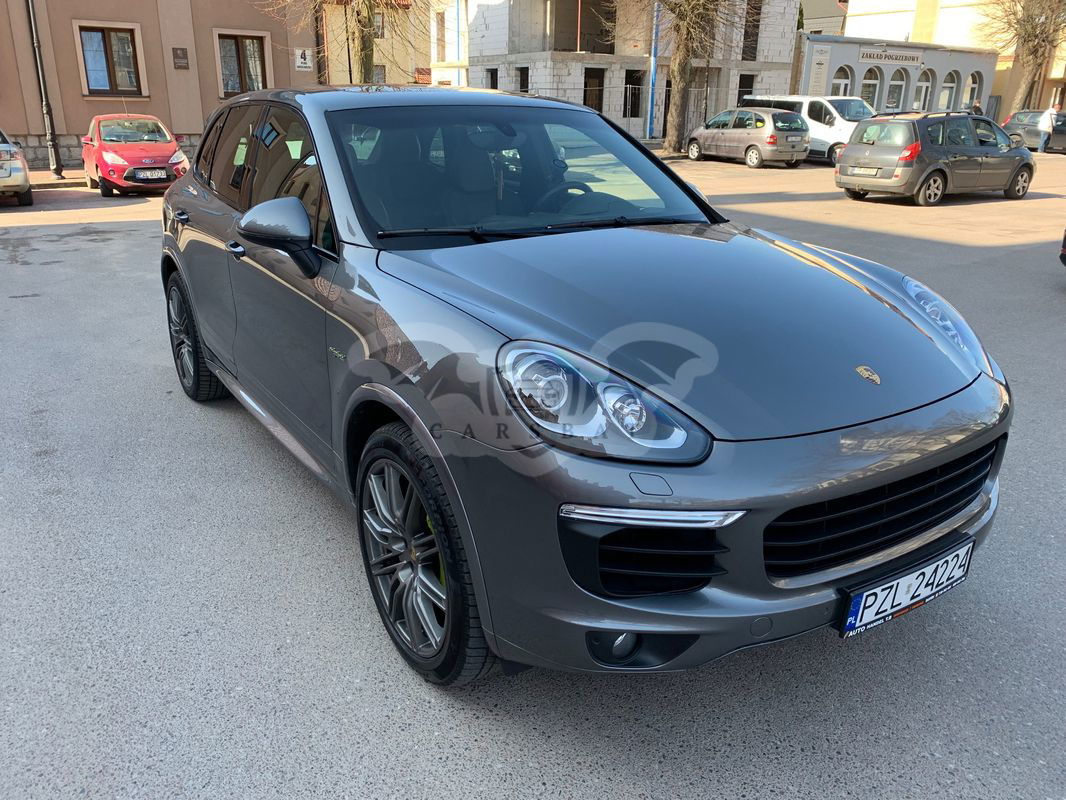 Szary Porsche Cayenne II S e-Hybrid 2016 roku | Hybrydowy