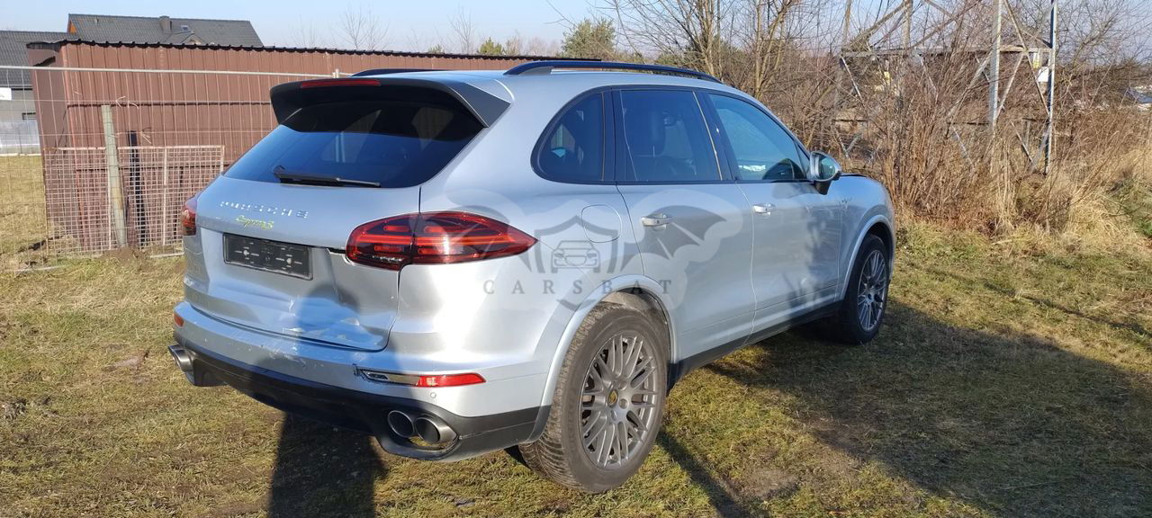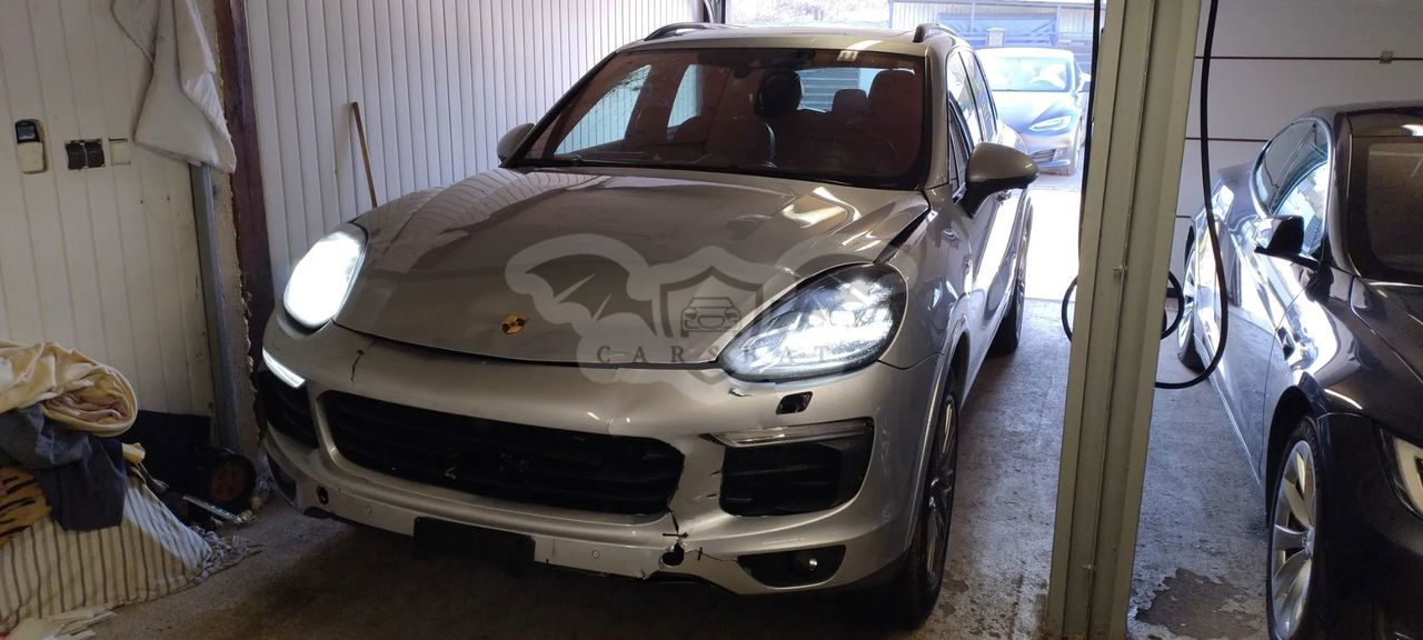 Sprzedam Porsche Cayenne w ostatnim lifcie II generacji z niskim przebiegiem, auto uszkodzone jak na zdjęciach głównie przód, tył delikatnie powierzchownie, jezdne. Zawieszenie, podłużnice nie wyglądają na uszkodzone, silnik spalinowy i elektryczny odpala i samochód jeździ, auto się normalnie ładuje. Bardzo bogato wyposażona wersja z dachem panoramicznym jak to w Szwajcarii. Cena brutto na FV + akcyza 9,5 % od kwoty na FV. Samochód do obejrzenia w Mysłowicach, nawet po zmroku ponieważ dysponujemy oświetlonym i suchym garażem. Wartość takiego samochodu w Polsce to około 200 tys zł. Po więcej informacji zachęcam do kontaktu telefonicznego.