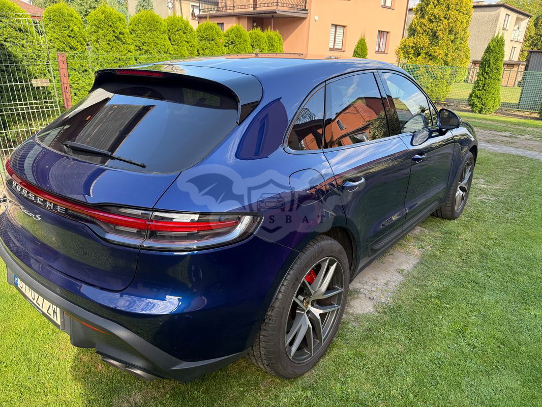 Ciemnoniebieski Porsche Macan I S 2023 roku | Benzyna