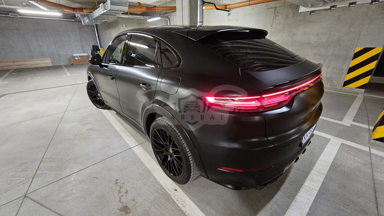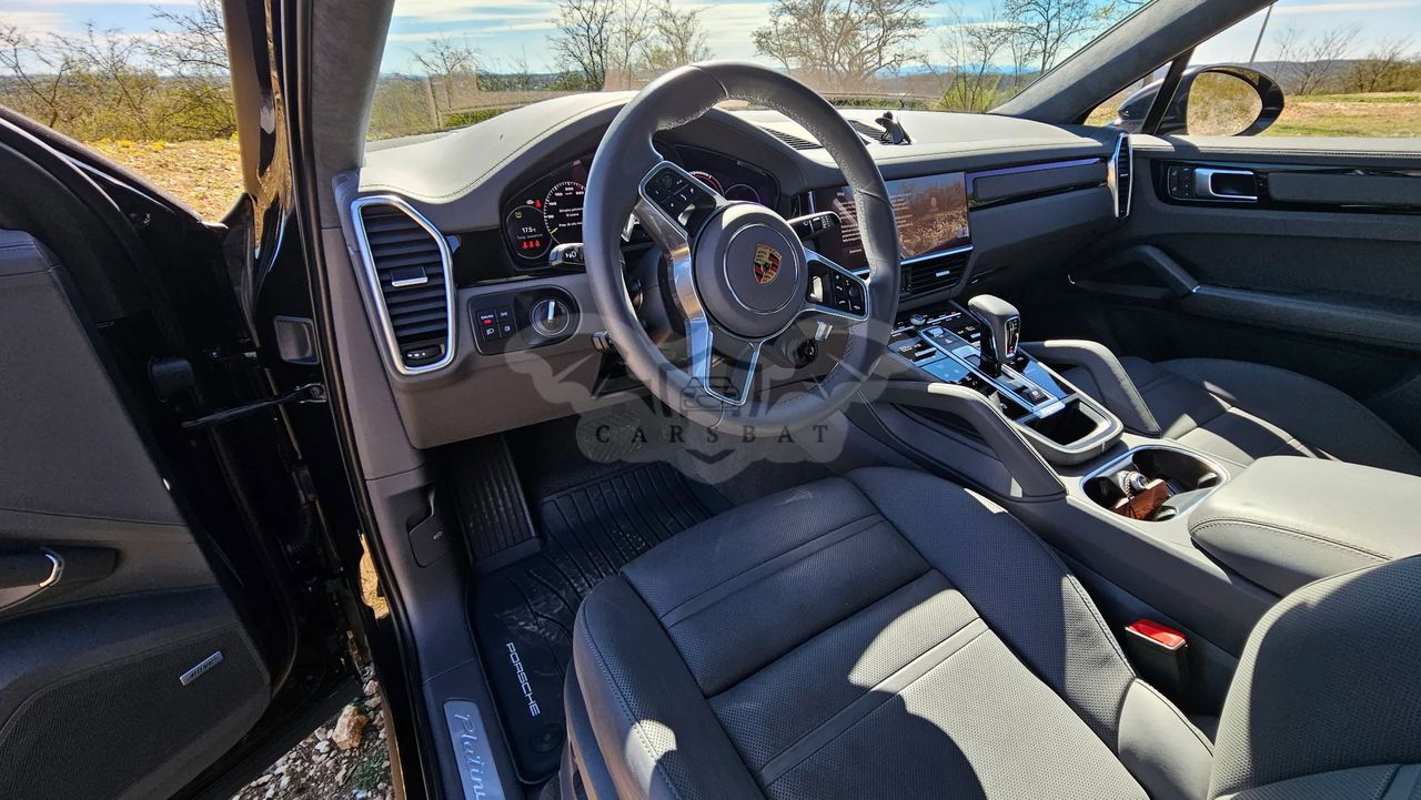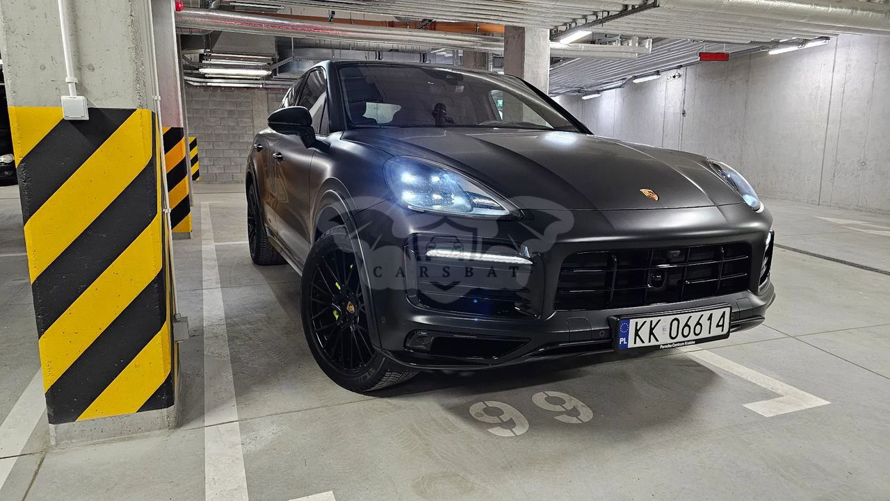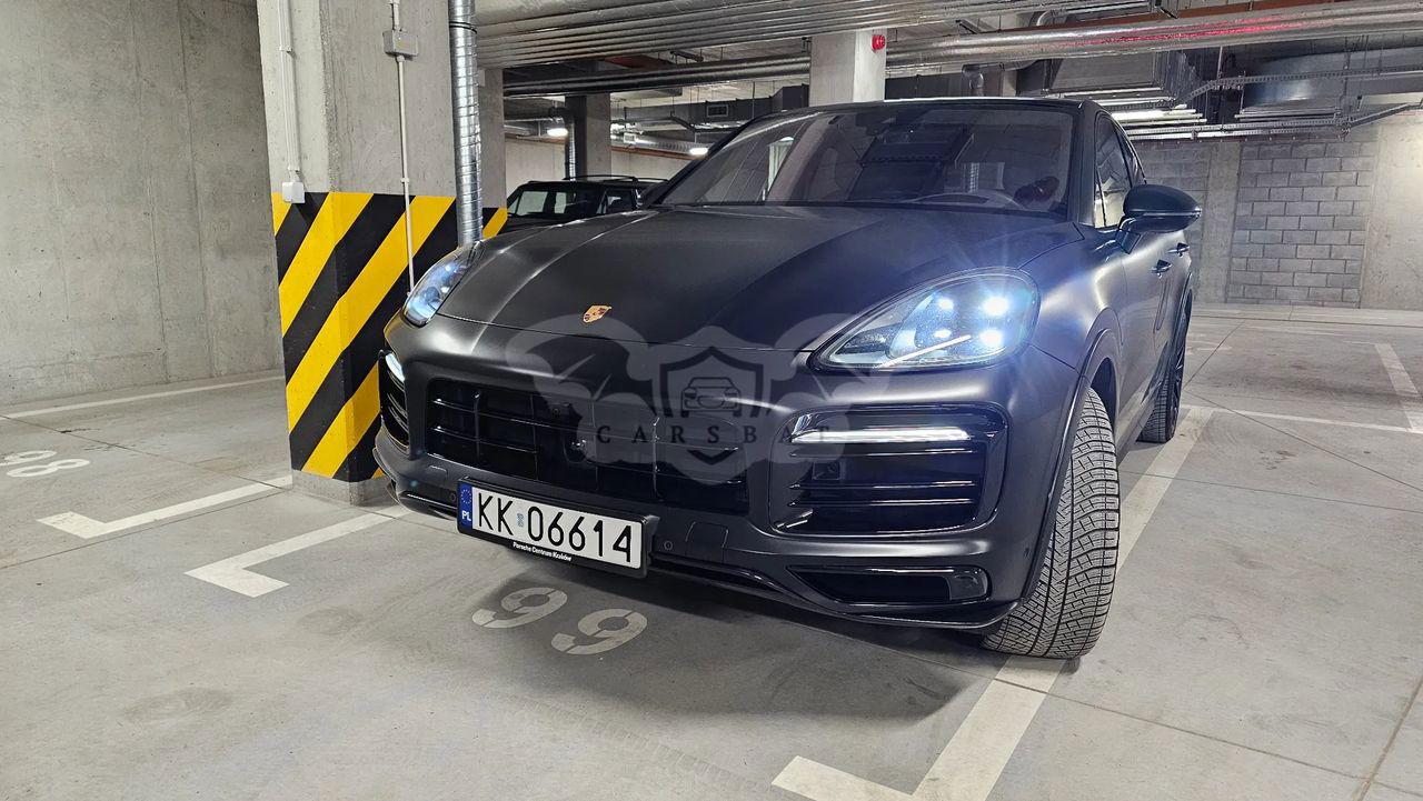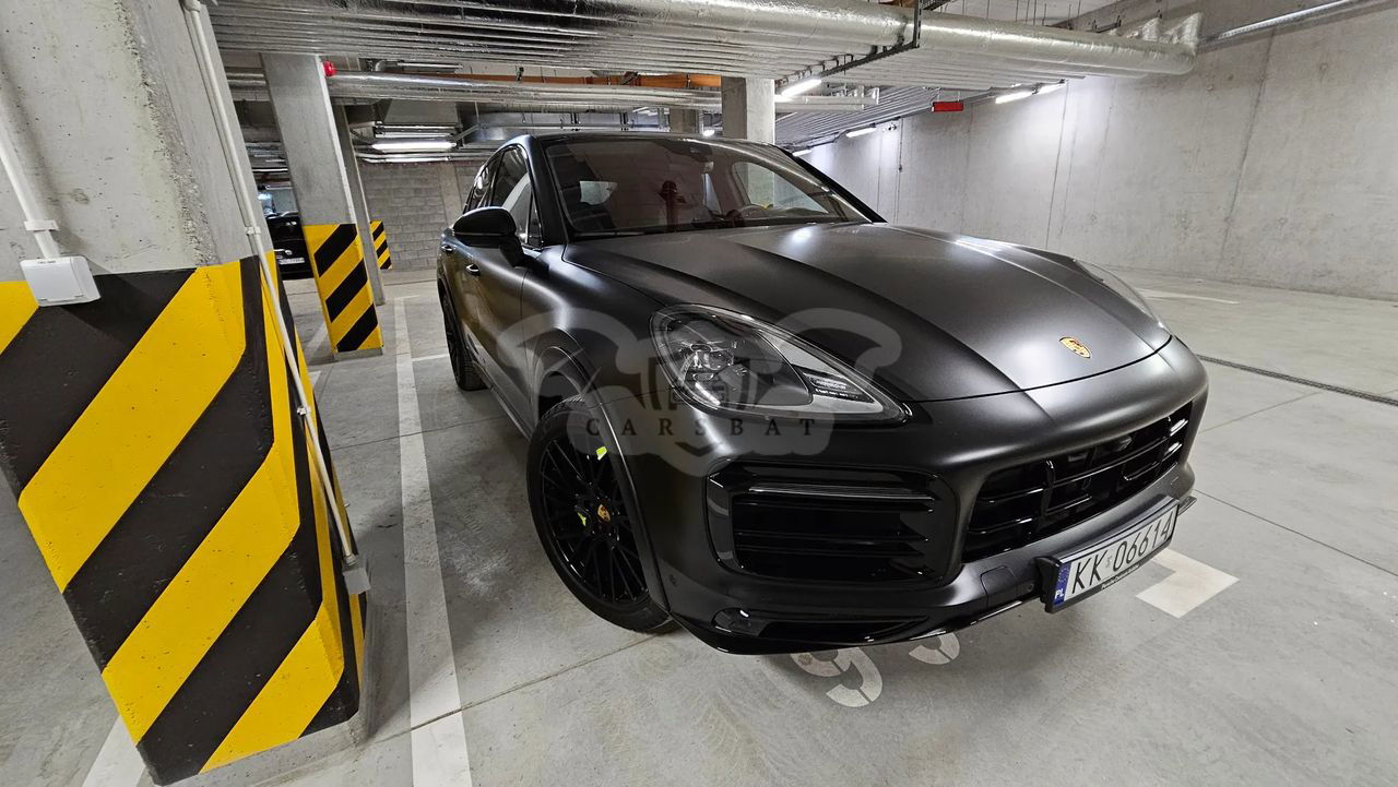 Samochód kupiony w polskim salonie Porsche Auto Premium w Krakowie w październiku 2022 r. Najbogatsza wersja wyposażenia Cayenne E-Hybrid Coupe Platinum Edition 3.0, 340 KM, maks. moment obrotowy 450 Nm, zużycie paliwa w trybie mieszanym 3,5l/100 km, 26 kWh/100km. Samochód posiada m.in. skórzaną tłoczoną tapicerkę (Slate Grey), automatyczną skrzynie biegów (8 biegowa przekładnia Tiptronic S), aktywny napęd na 4 koła, wentylowane tarcze hamulcowe, system stabilizacji jazdy Porsche, lakier metalizowany Chromite Black Metallic (aktualnie samochód jest w całości oklejony folią zabezpieczającą w kolorze czarny mat), podgrzewane oraz elektrycznie sterowane sportowe fotele, aluminiowe felgi (21” obręcze RS Spyder Design lakierowane w kolorze Satin Platinum), czujniki parkowania przód/tył wraz z kamerą parkowania 360 stopni, czterostrefową klimatyzację, nawigację GPS, duży wyświetlacz LCD zintegrowany z telefonem Android Auto i Apple Carplay, zestaw głośnomówiący, bluetooth, zestaw głośników audio BOSE Surround Sound System, przyciemniane szyby tył, tempomat, elektryczne składane i automatycznie przyciemniane lusterka, system bezpieczeństwa , układ wspomagania hamowania, czujnik deszczu przedniej szyby, podgrzewane dysze spryskiwaczy, elektrycznie otwierane i zamykane drzwi bagażnika, aktywne reflektory w technologii LED, zestaw poduszek powietrznych, w tym kurty powietrzne oraz wiele innych systemów wspomagania bezpieczeństwa. Dodatkowo elektrycznie rozkładany hak holowniczy oraz powiększony zbiornik paliwa o pojemności 75 litrów. Pierwszy właściciel, samochód absolutnie bezwypadkowy, (aktualny i rzeczywisty przebieg samochodu to: 26 900 km), zadbany, serwisowany w ASO i garażowany. Wizualnie to piękny, samochód, godny uwagi i zakupu. Samochód mało użytkowany, w środku w zasadzie wygląda jak nowy. Z samochodem nigdy nie było najmniejszych problemów. Cena za wybrany model w salonie to 744.700,00 zł + zabezpieczenie folią matową 30.000,00 + dodatkowy zestaw kół 20.000,00 zł = ok. 800.000,00 zł Zapraszam do obejrzenia auta na żywo. Uwaga!!! Samochód do wzięcia od zaraz. Wszystkich zainteresowanych zapraszam do kontaktu pod numerem telefonu: .