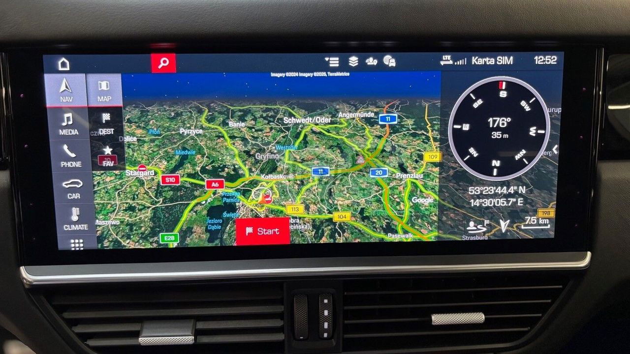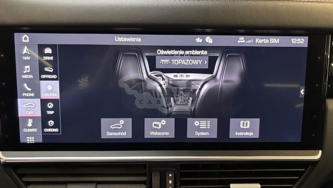 Skrętna tylna oś – poprawa zwrotności i stabilności przy wyższych prędkościach. Pakiet Sport Chrono – zapewnia maksymalne osiągi w trybie sportowym. Dach panoramiczny – dla wyjątkowych wrażeń podczas podróży. Czterostrefowa klimatyzacja automatyczna – indywidualne ustawienia dla każdego pasażera. Przyciemniane tylne szyby i oświetlenie ambientowe – dodają elegancji i prywatności. System cichego domykania drzwi – komfort i wyrafinowanie. Pakiet wykończenia wnętrza włóknem węglowym – ekskluzywne akcenty w kabinie. Komfort i technologia Wnętrze wykończone gładką skórą w kolorze czarnym łączy luksus i funkcjonalność. Fotele oferują wyjątkowy komfort, a przestronny bagażnik o pojemności 645 litrów pozwala na wygodne przewożenie bagażu. Porsche Communication Management (PCM) z ekranem dotykowym i modułem nawigacji online zapewnia intuicyjną obsługę multimediów. Wyświetlacz Head-Up dostarcza kluczowe informacje bez konieczności odrywania wzroku od drogi. Dlaczego warto wybrać ten model?