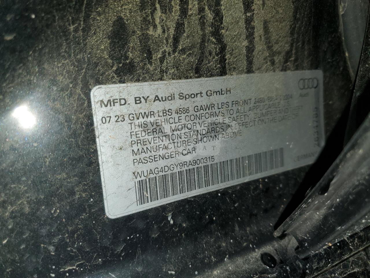 • VIN: WUAG4DGY9RA900315