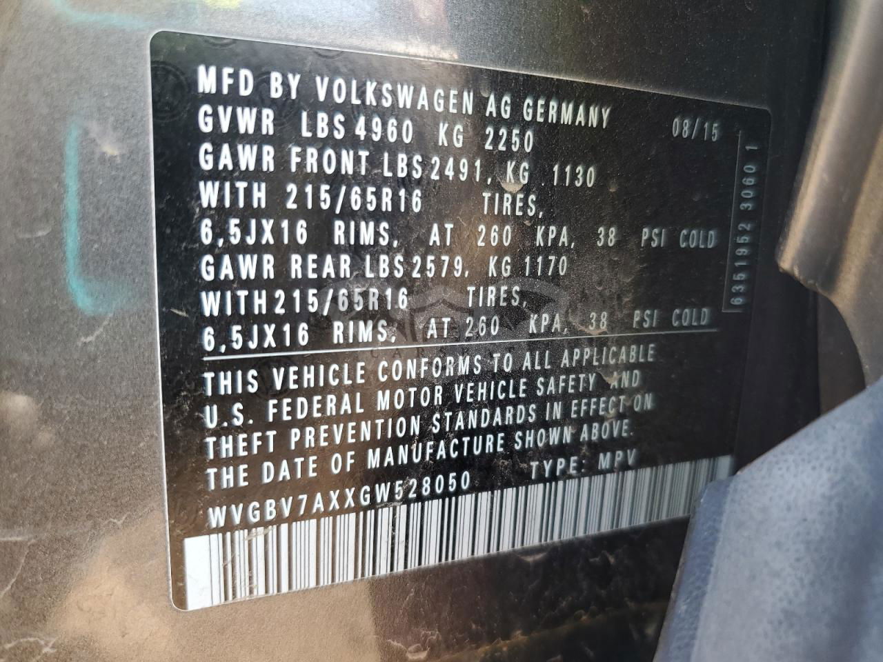 • VIN: WVGBV7AXXGW528050