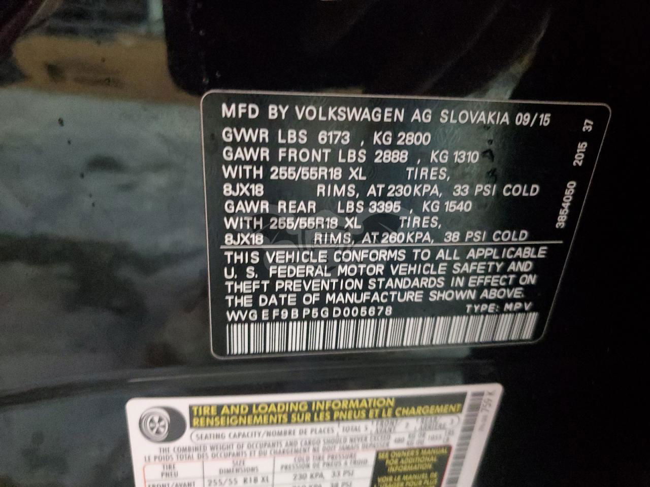 • VIN: WVGEF9BP5GD005678