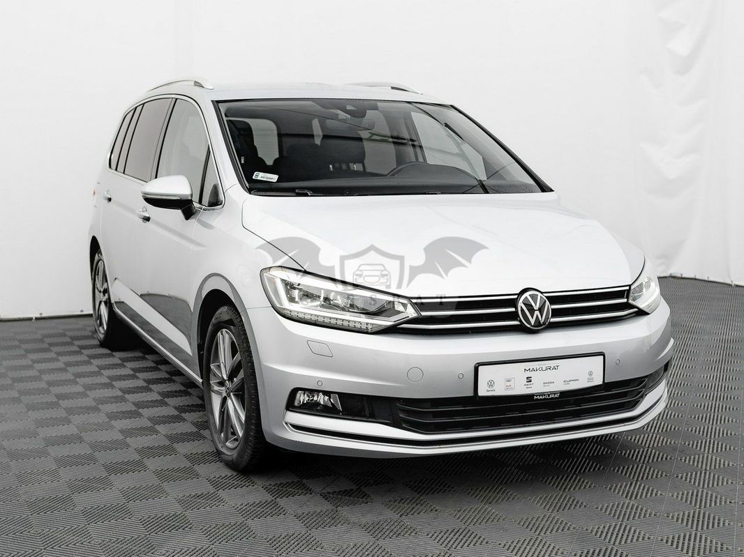 Srebrny Volkswagen Touran III 1.5 TSI EVO Highline 2021 roku | Benzyna