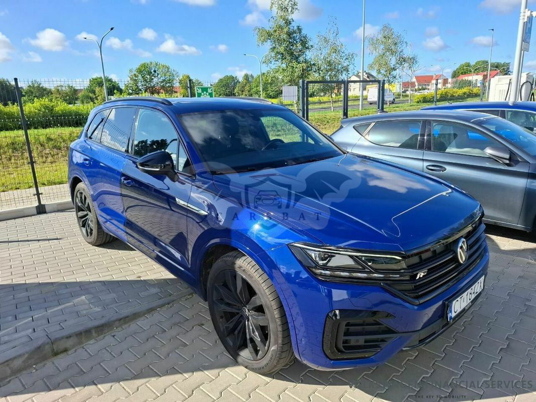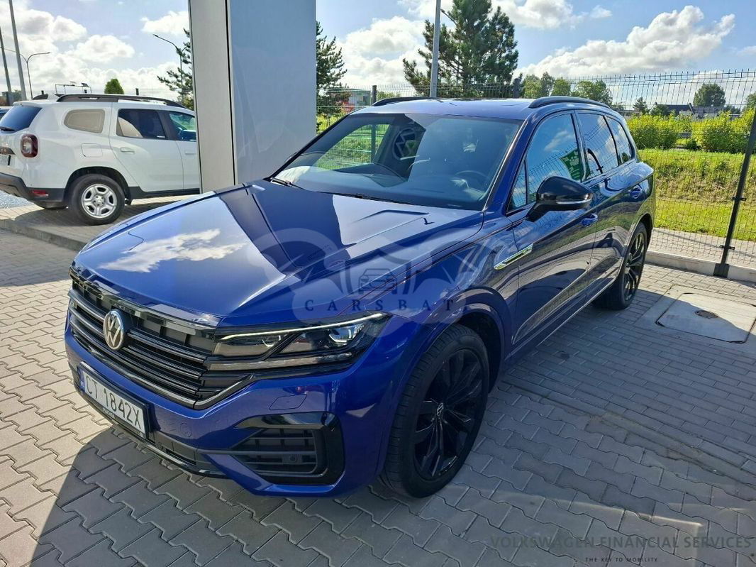 Niebieski Volkswagen Touareg III 3.0 V6 TDI SCR 4Mot R-Line 2021 roku | Diesel