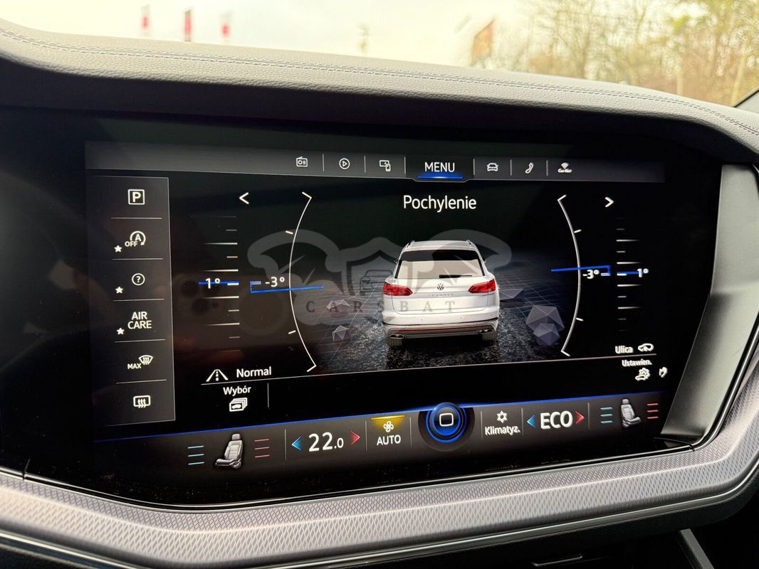 Istnieje możliwość pozostawienia dotychczasowego auta w rozliczeniu! _____________________________________________________________________________________ Wyposażenie dodatkowe: Oświetlenie Ambiente dla Pakietu R-Line: - Oświetlenie dodatkowe wnętrza, kolorowe - Listwy progowe ze stali szlachetnej, podświetlane - R-line Pakiet Drogowy Plus: - Aktywny system ochrony pasażerów PreCrash domykanie szyb i dachu, wstępne napinanie pasów - System Cross Traffic Assist - asystent jazdy przez skrzyżowanie - System Side Assist Plus z Systemem Rear Traffic Alert - System Traffic Jam Assist - asystent jazdy w korku Pakiet Zawieszenie: - Zawieszenie pneumatyczne z elektroniczną regulacją wysokości - Zawieszenie z adaptacyjną regulacją DCC Pakiet stylistyczny R-Line Exterieur Black Style: - Listwy ozdobne dookoła szyb bocznych, czarne w stylistyce Black Style - Obudowy lusterek w kolorze czarnym - Zderzaki w kolorze nadwozia z czarnymi elementami Dach szklany, panoramiczny Drzwi boczne z elektrycznym wspomaganiem domykania Dynamic Light Assist - dynamiczna regulacja zasięgu reflektorów z dynamicznym doświetlaniem zakrętów Felgi aluminiowe 21 Suzuka z czarnym połyskiem Fotele przednie z aktywną wentylacją i funkcją masażu Gniazdo 230V i 12V w konsoli centralnej z tyłu Hak holowniczy - demontowalny, składany elektrycznie z Systemem Trailler Assist Innovision Cockpit z Active Info Display - komputer pokładowy z personalizowanym wyświetlaczem Instalacja telefoniczna Business z funkcją ładowania indukcyjnego Klimatyzacja czterostrefowa z filtrem antyalergicznym i panelem z tyłu Lampy przednie LED Matrix MDF ze światłami do jazdy dziennej LED oraz dynamicznymi kierunkowskazami Lampy tylne wykonane w technologii LED, przyciemniane ze zmienną grafiką Pakiet Pamięć (funkcja pamięci ustawień fotela kierowcy oraz lusterek) Spryskiwacze lamp przednich System Area View z Park Assist Plus System Easy Open / Easy Close System Keyless Access - bezkluczykowy dostęp i uruchamianie pojazdu System nawigacji satelitarnej Discover Premium Szyba przednia podgrzewana bezprzewodowo Szyby boczne-tylne oraz szyba tylna dodatkowo przyciemniane, szyby boczne dźwiękoszczelne Tapicerka skórzana Savona Wyposażenie standardowe obejmuje m.in.: ABS, ESP App Connect - widok ekranu smartfona na ekranie radia lub nawigacji Autoalarm z niezależnym zasilaniem (Back-up-Horn), funkcją dozoru wnętrza i czujnikiem przechyłu Czujnik ciśnienia w oponach Czujnik deszczu Czujnik zmierzchu z funkcją Coming / Leaving Home Emergency Call - automatyczne wzywanie pomocy Fotele przednie regulowane elektrycznie Fotele przednie z funkcją podgrzewania Kierownica wielofunkcyjna sportowa, skórzana, z funkcją Tiptronic, podgrzewana Lane Assist - asystent utrzymywania pasa ruchu Lusterka boczne przyciemniane, podgrzewane, elektrycznie składane z pamięcią i funkcją oświetlenia Pokrywa bagażnika z elektrycznym zamykaniem i otwieraniem Sign Assist - system rozpoznawania znaków drogowych Sygnalizacja zmęczenia kierowcy System Front Assist z funkcją awaryjnego hamowania City System Park Pilot - czujniki parkowania z przodu i z tyłu System wykrywania pieszych Tempomat proaktywny ACC do 250 km/h analizujący dane z naw. z aut. regulacją odległości i stop & go Tuner cyfrowy DAB+ Uchwyty ISOFIX - przygotowanie do montażu 2 fotelików na zewnętrznych siedziskach tylnej kanapy Wybór profilu jazdy Światła na złą pogodę _____________________________________________________________________________________