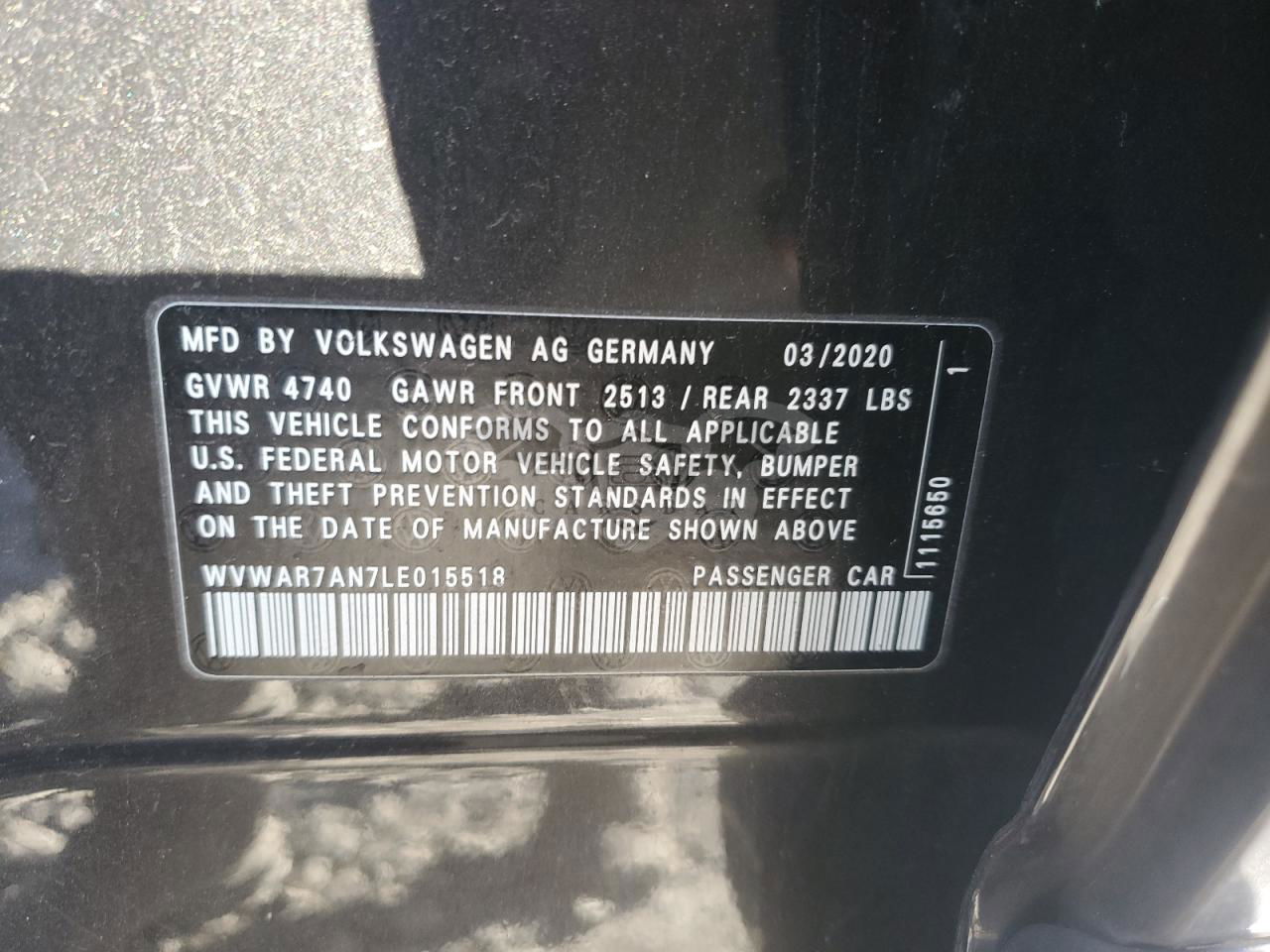 • VIN: WVWAR7AN7LE015518