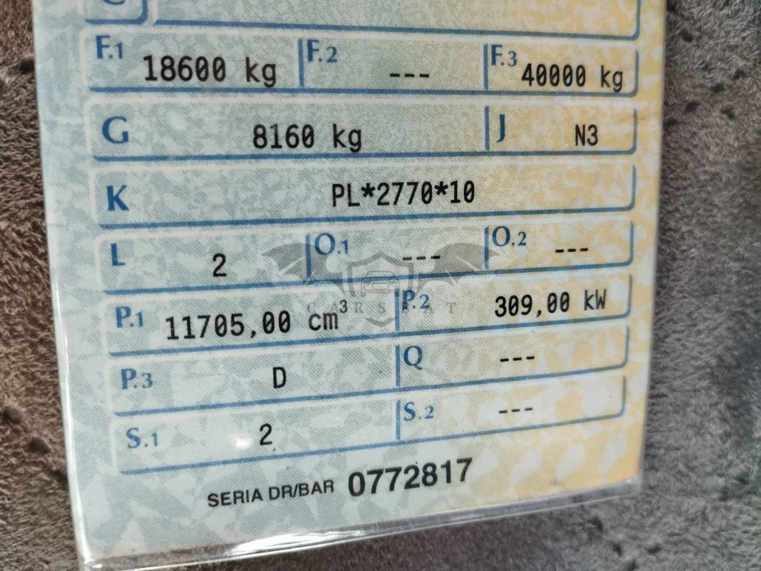 drugi właściciel zawieszenie pneumatyczne - lowdeck (poduszka przód i tył) kabina typu topline oryginalne dwa zbiorniki paliwa 700l + 550l nowa chłodnia cieczy, klimatyzacji regenerowana podstawa osuszacza 12.2023 nowa sprężarka powietrza 01.2024r pojazd użytkowany w ruchu krajowym trasa Poznań - Sochaczew świeżo po obsłudze olejowej (Total 10W/40) stan dobry, nie wymaga żadnego wkładu finansowego, wszystko sprawne. stan opon ok. 40% tył, 50% przód. silnik suchy, brak jakichkolwiek wycieków (2020r wymiana tłoki + tuleje) manualna skrzynia biegów, retarder blokada tylnego mostu